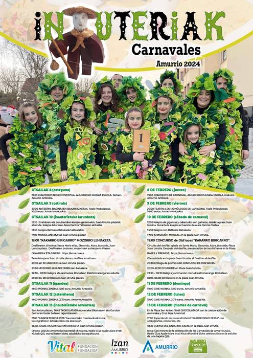 Hurrengo jarduerek osatuko dute inauterietako larunbateko egitaraua: