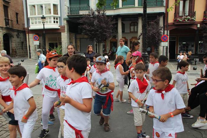 "San Fermin txiki" ospatu zuten Urduñako haurrek atzo. Txupinazoa bota zuten Udaletxeko balkoitik eta entzierroa egin zuten Foru Plazan zehar.