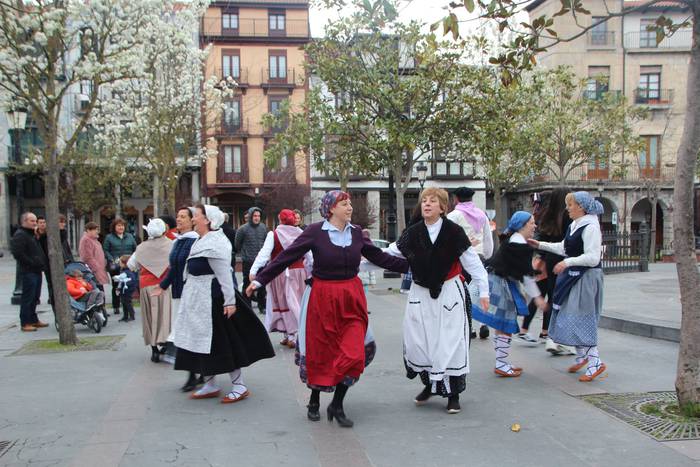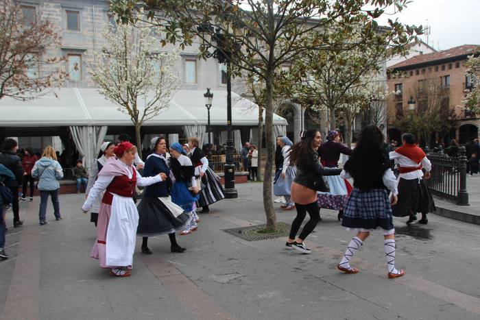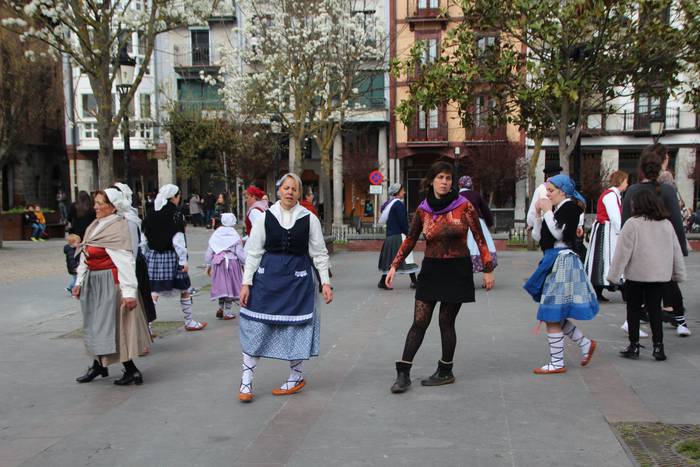 Urduñako Foru plazan antolatu zuten atzo Aukeren azoka. Giroa berotzeko dantza erakustaldia ikusteko parada ere eman zuten.
