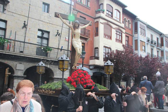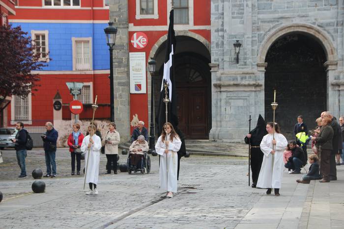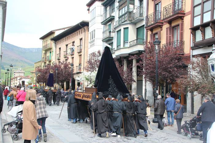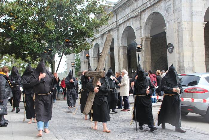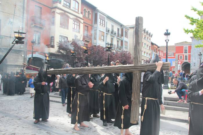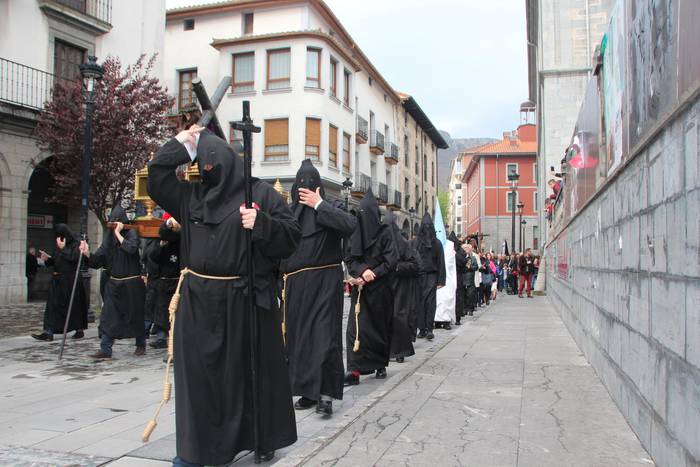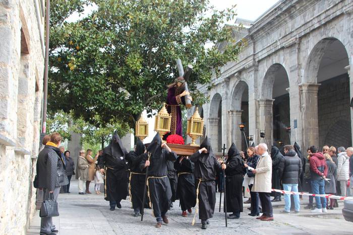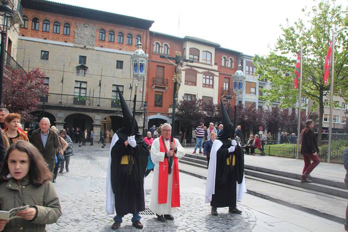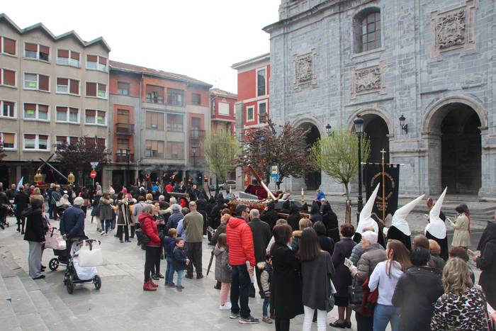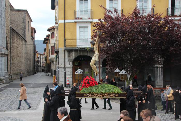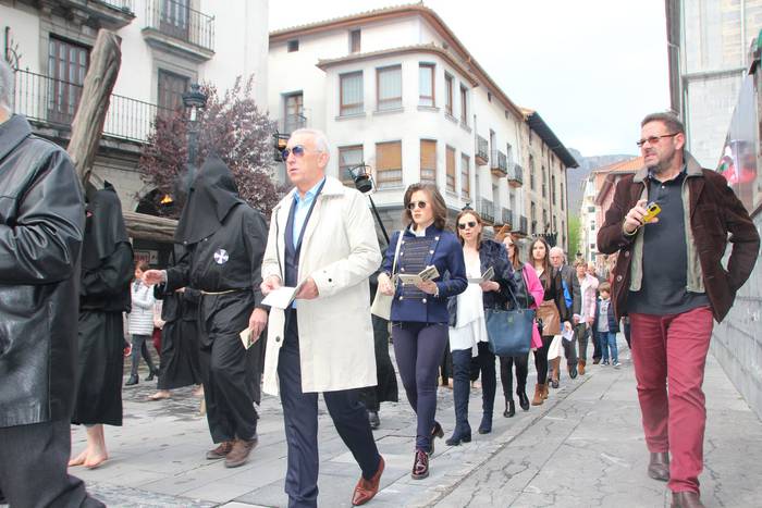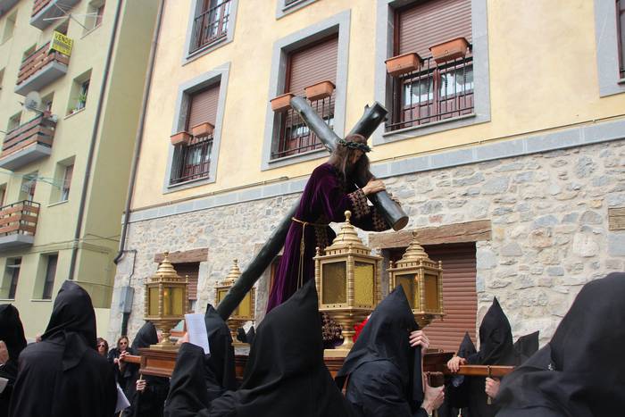 Urduñan Kalbarioko Prozesioa egin dute gaur eguerdian eta fededun talde batek lagundu ditu hiriko kaleetan zehar.
