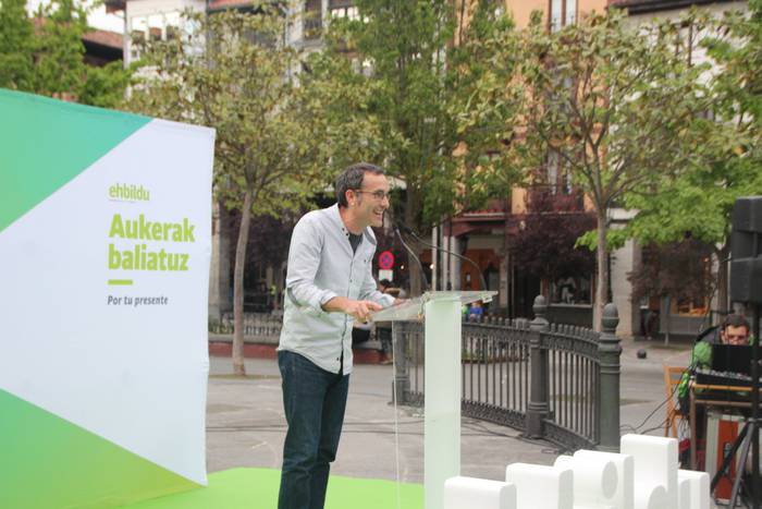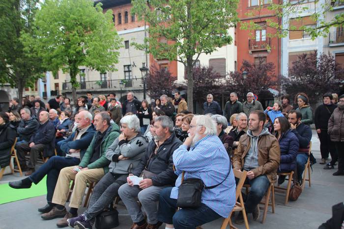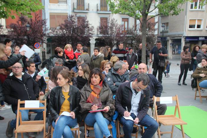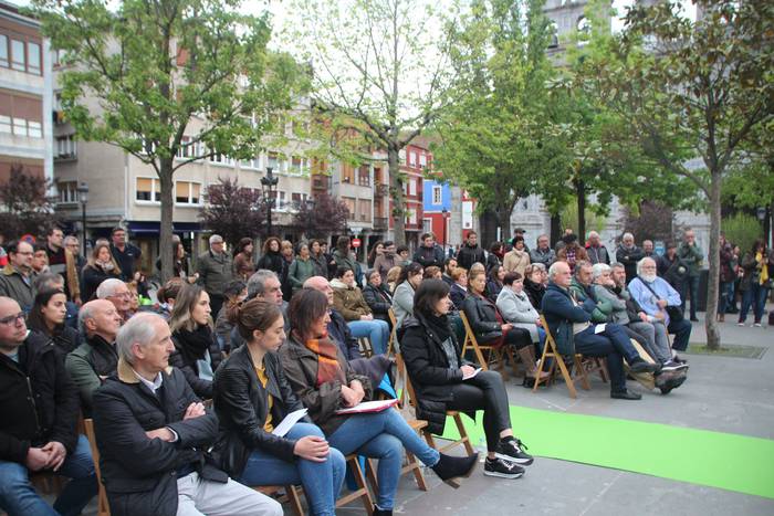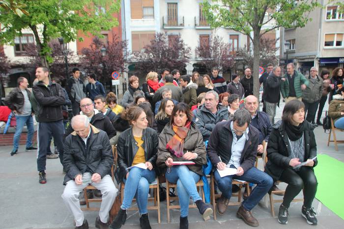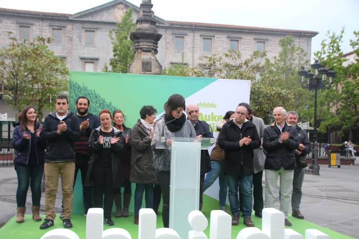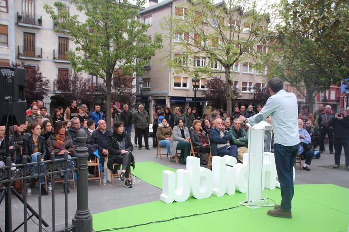 Julen Arzuaga legebiltzarkide aretarrak hartu du hitza lehenbizi. Idoia Aginako alkatearen txanda izan da jarraian, eta Itziar Biguri alkategaiarena ondoren. Bigurirekin batera igo dira oholtzara koalizioaren zerrenda osatzen dute gainontzeko 14 kideak.
