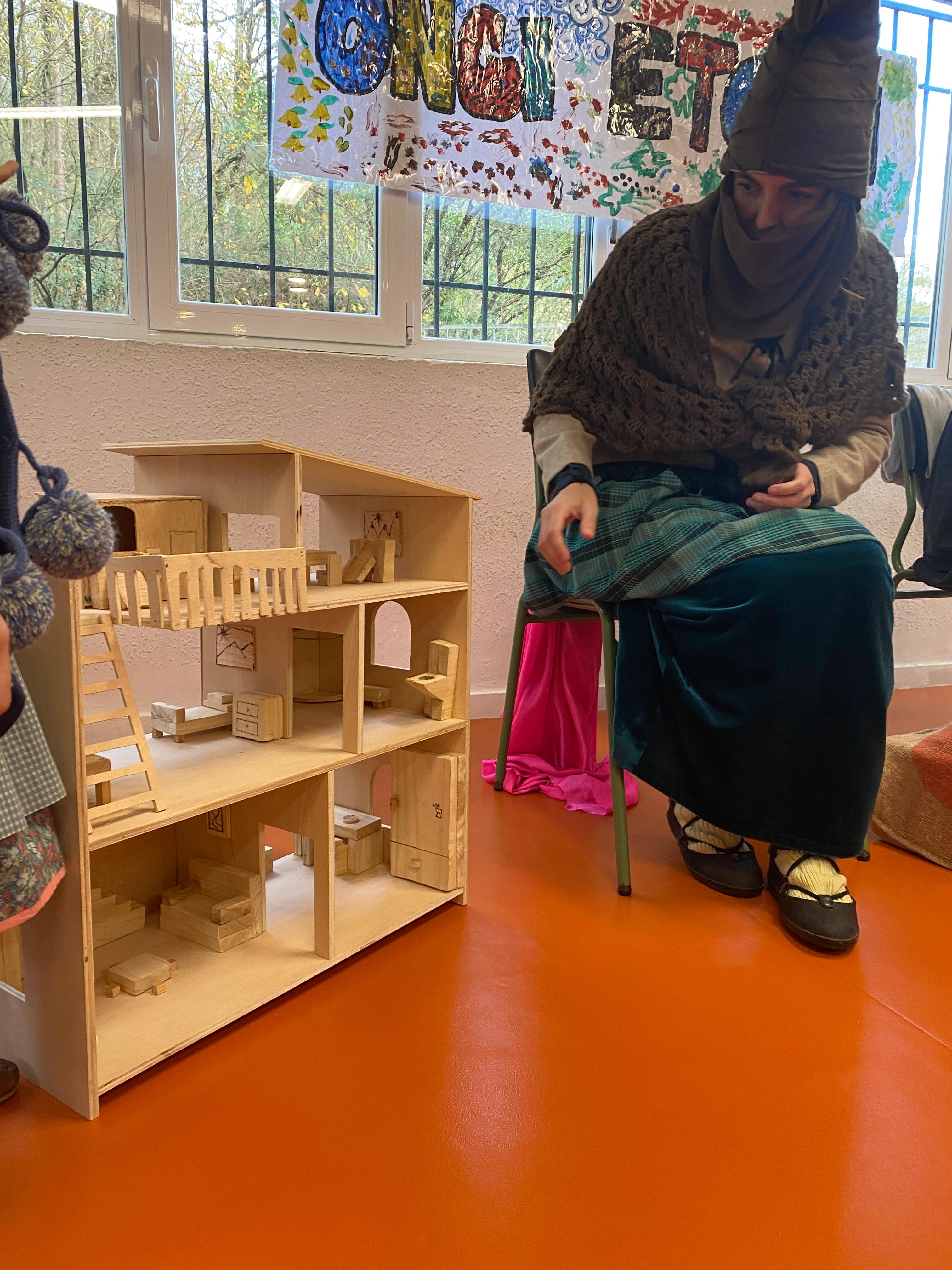Ikastolako txikienek ere oso gogotsu jasotzen dituzte opariak. Jostailua estreinatzeko unea “magikoa” dela azaldu du Atxabalek: “Oso baliagarriak zaizkigu jostailuak Haur Hezkuntzan. Orain, esaterako, herria eta etxea lantzen ari gara proiektu batean, eta oso aproposa da DBHko ikasleek egindako panpina-etxeak eskura izatea”.