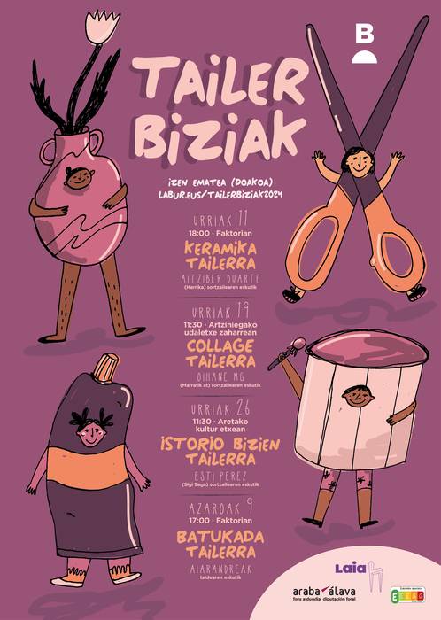 “Tailer biziak” ekimena sortu du Bor-bor feminismo elkarteak. Udazkenean zehar garatuko dute egitasmoa, urrian eta azaroan, zehazki. Guztira lau jarduera izango ditu 2024ko edizioak, eta partaideentzat doakoak izango dira Arabako Foru Aldundiaren berdintasun diru-laguntzari esker. Hain zuzen, urriaren 11n abiatuko dute zikloa Laudioko Faktorian, Aitziber Duarte @harr.ika sortzaileak gidatutako keramika tailerrarekin, 18:00etatik aurrera.