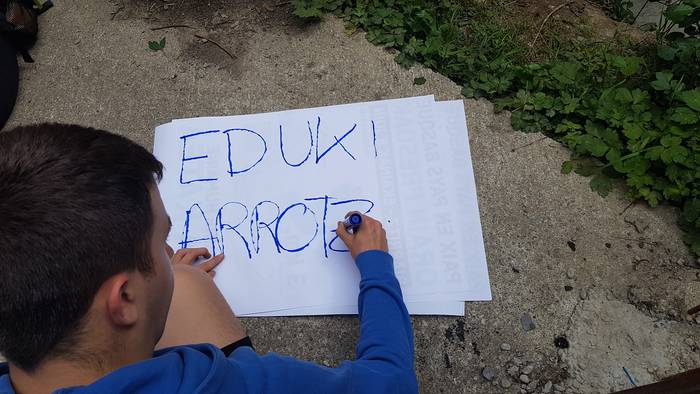 Hurrengo ekimena bidean topatu genuen hesi baten inguruan egin genuen, hezkuntza prozesuan zehar hainbat oztopo topatzen ditugulako, besteak beste, selektibitatea, errebalidak, eduki arrotzak, zuzendaritzaren autoritarismoa, errutina, jai egun arrotzak... Horiekin apurtu eta inposatzen diguten edozein hesi zein oztopo gainditzeko gai gara.