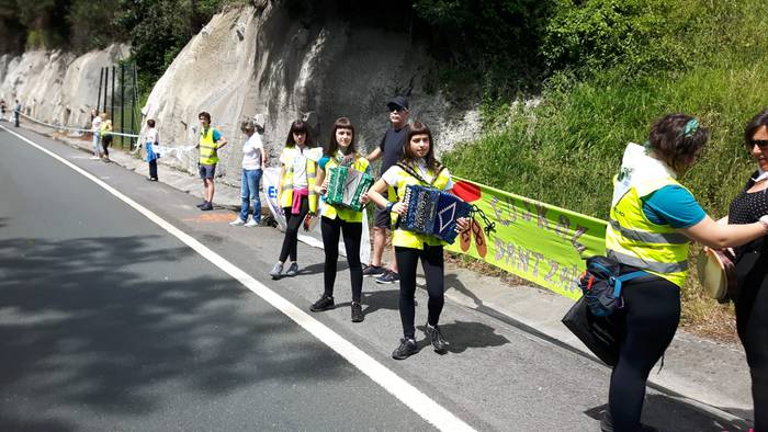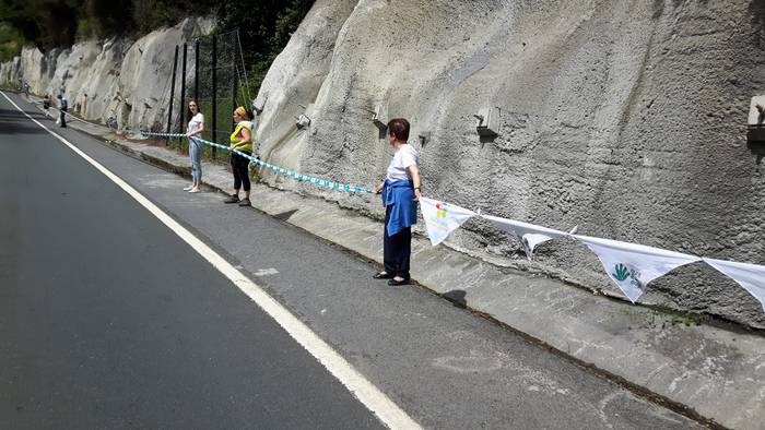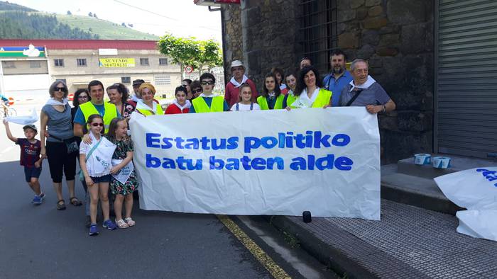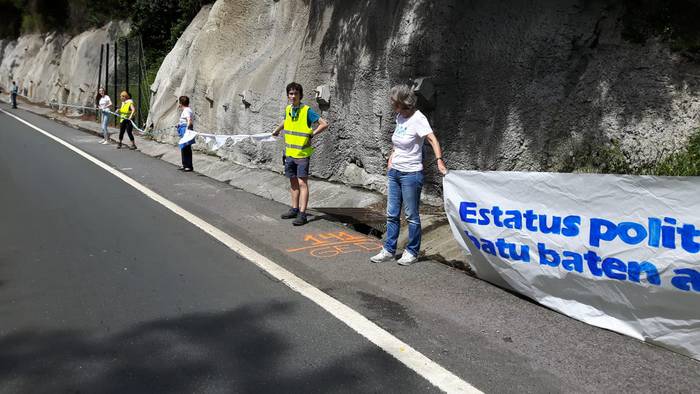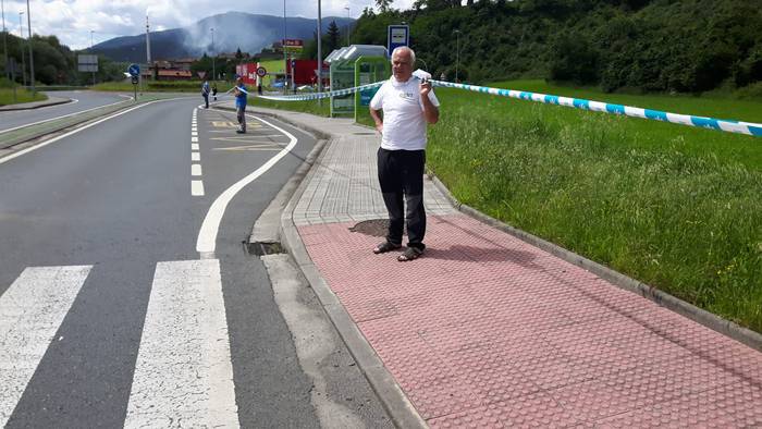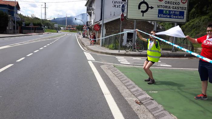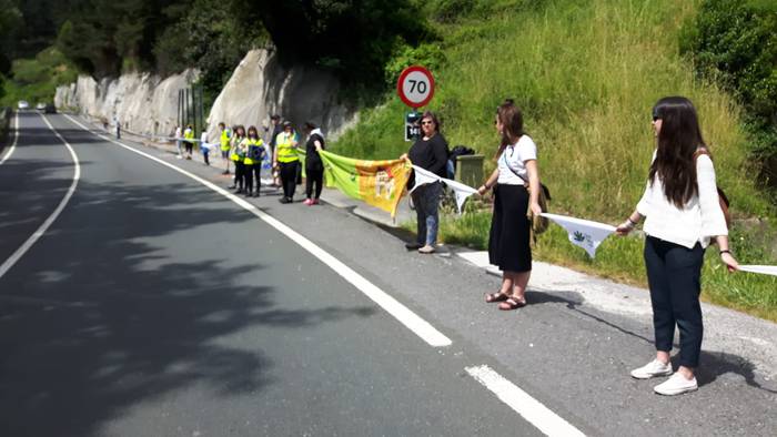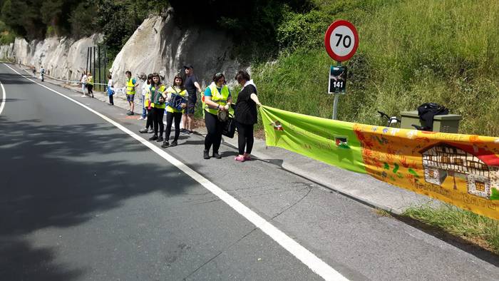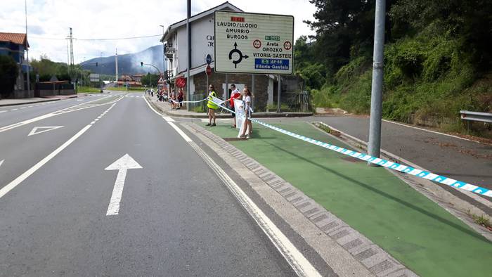 Arakaldoko errepide bazterretan bildu dira Arakaldo, Areta, Laudio eta Orozkoko zenbait lagun.