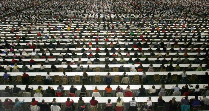 Saltzen ari diren hezkuntzan, guri ikasaraziko horretan, gogoetaren pilota, azterketa prestatzen duten horien teilatuan jarri behar da, hautagaiok gure lana eginda baitugu. Nire tribunalean notarik altuena 5,6 bat da, ez dakit zenbat ordu sartuta, nahiko eskas bat?! Zer broma txarra da hau? Jende dexente daukat aurretik, baina ez dut uste bat ere konforme dagoenik jasotako emaitzarekin. 4 dezimaletako emaitza. Tribunaleko horiek proposatutako azterketa hori gaindituko lukete? Ezezkoan nago. Leonardo Da Vincik, 5,75002ko emaitza lortuko luke, agian, egun ona izanda. Ez da bidezkoa, ez da justua, ez da etikoa eta ez dauka ez hanka ez buru. Hirugarren fasera heldu baino lehen plaza desertuak geratzea, teorian finkapena eta egonkortasuna bilatu nahi denean, iraingarria da hautagaientzako. Haceoslo mirar.