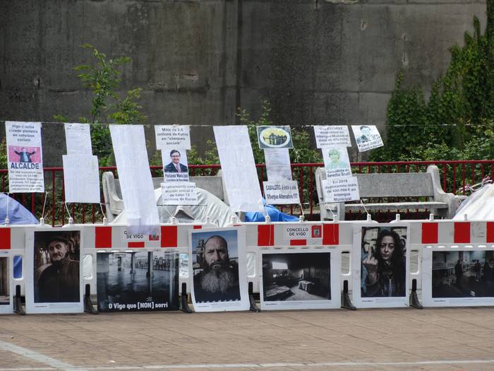 “O Vigo que [NON] sorrí” agerian geratzen zen argazkietan eta argazkien mezuetan zirrarak sortaraziraino. Cosuelorena, tratu txarrak jasan ondoren bi seme-alabekin ihes egin eta labirinto burokratiko batean itotzen den emakume gaztea. Peperena, lana galdu ondoren nabe abandonatuetan bazter bat lo egiteko egunero bilatzen duena. Roberto Carrerarena, istripu batengatik lan on bat galdu zuena, eta orain, dena galduta, erortzear dagoen etxe ziztrin batean bizi behar duena. Merchy Fernández-ena, hiru semeren ama, 2016an bere etxea galdu zuena, eta errekurtso nahikorik ez izateagatik Vigotik kanporatua izan zena. Juan Miguelena, Castrelos parkean bi urtez lo egin zuena; gose-greba egin behar zuen bere egoera hobetzeko, baina kanpaldian jarraitzen du “inork kalean ez dezala lo egin behar, eta etxerik gabeko pertsonen oinarrizko eskubideak bermatzearen alde borrokatzeko”. Suso Aguayorena. Veronica Cajaravillerena. Elisa Pérez-ena. Eta beste askorenak.