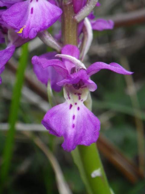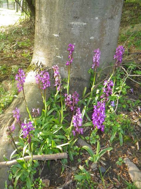 "Parrandan" ari diren azken gazte taldeak atzean utzita (“behatokian” sekulako berbena dago!), astigarren basotxoan sartu gara. Zuhaizti txiki eta pinpirin honen behe aldean hainbat pago daude ta zuhaitz hauen magala gogoko izaten du Orchis mascula orkideak. Hala da gaurkoan ere eta aurrerantzean eremu honetan arrunta izango den orkidearen lehen aleen fuksia koloreak bizia ematen dio giroari.