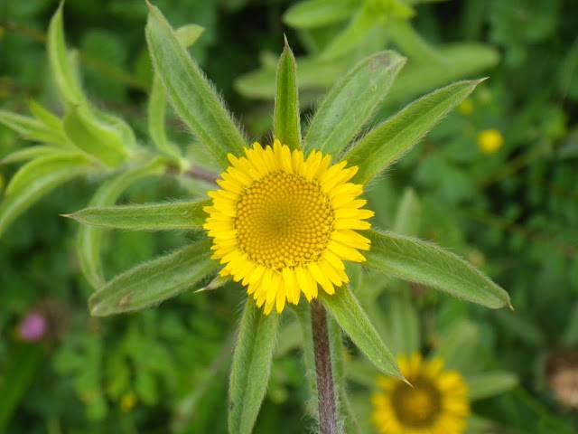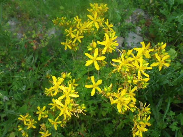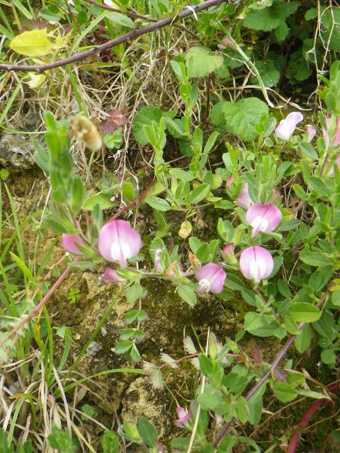 Gaztelura helduta, Arrañoko etxe tipikoen artean jarraitu dugu paseoa, ur-biltegiaren gaineko jolasgunera arte. Hemen, Gurutzera daraman zidorra hartu beharrean, errepidetik jarraitzea dut gogoko. Izan ere, Arraño mendiko belardiak hasten diren leku honetan (azkeneko errepidea eta harrizko ezpondek bat egiten duten lekuan), landaretza aberatsa agertzen da, akaso orientazioak ahalbidetuta eta beste inon agertzen ez diren espezieak hemen hazten dira. Gaurkoan, zenbait gramineaz gain, urteko lehengo sanjuan belarrak (Hippericum perforatum) ikusi ditugu eta baita ere gerotsuago ugariak izango diren idi begia (Pallenis spinosa) eta galdarrona (Ononis spinosa) loreak.