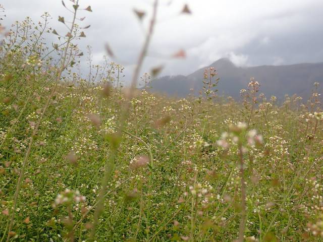 Basotik, Arrañoko puntara abaitu gara belardi berde goxoan gora. Ederra dago eta udan kardaberez betetako eta aziendek zanpatutako lur sikuarekin duen aldeaz mintzatzen gara. Arrañoko eremu osoan bezala, eszilak (Scylla verna) nagusi dira belargunetan eta non-nahi agertzen dira.