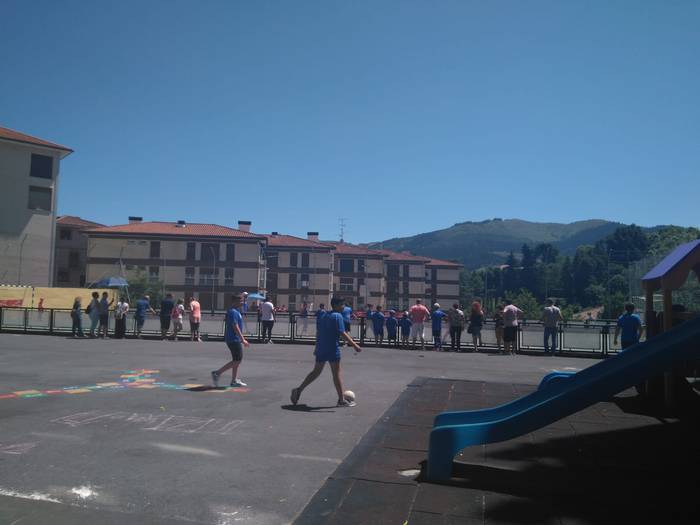 Urtero bezala, "12 ordu futbolean" ekimena antolatu zuen atzo Laudioko Lamuza Eskolak. Goizeko bederatzietatik gaueko bederatzietara arte dozenaka lagun aritu ziren ikastetxeko patioan baloiarekin jolasten. Lamuzako ikasle eta ikasle ohiez gain, beste hainbat ikastetxe eta eragileetako kideek hartu zuten parte egitasmoan: Latiorro Ikastetxekoak, Laudio eta Aresketa Ikastoletakoak, Altzarratekoak, Babakanekoak, Gaztetxekoak, La Milagrosakoak eta Aretako Eskolakoak.