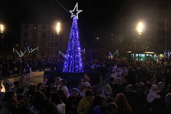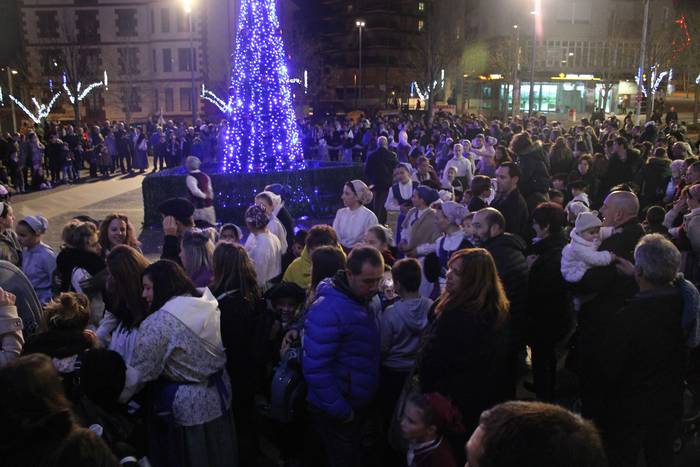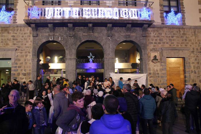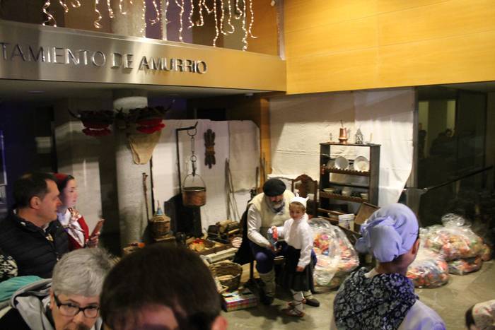 Amurrion ere egon ziren atzo arratsaldean Olentzero eta Maridomingi. Dozenaka haur eta heldu bertaratu ziren bi pertsonaiak agurtzera.