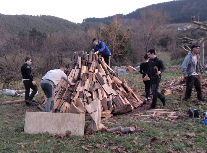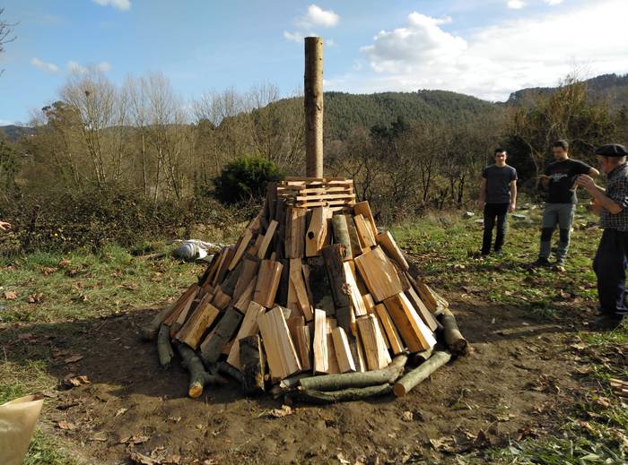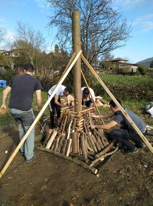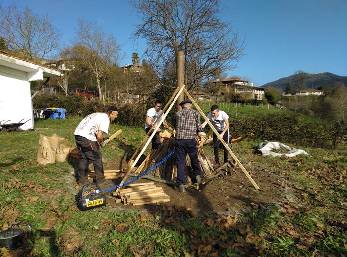 Txondor Gaztetxeak ostiralean erakutsi zuen nola eraikitzen den egitura -txondorra, alegia- ikatza egiteko.