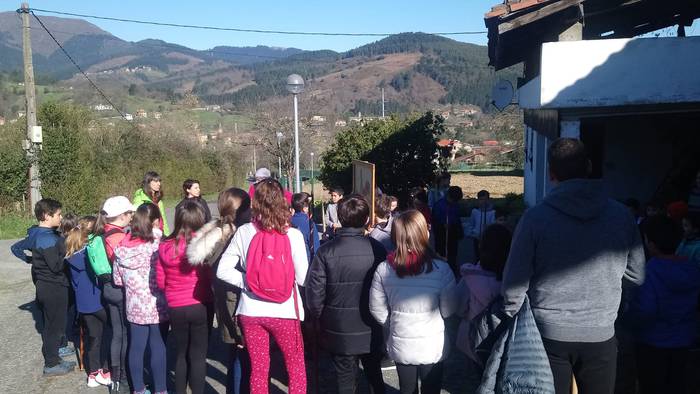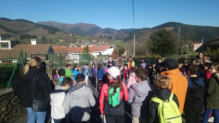 Herriko eskolako ikasleek Eguen Zuri ospatu zuten atzo, ohitura jarraiki. Horrela, etxez etxe joan ziren herrigunetik egun horretako kanta abesten eta auzokideen donazioak jasotzen.