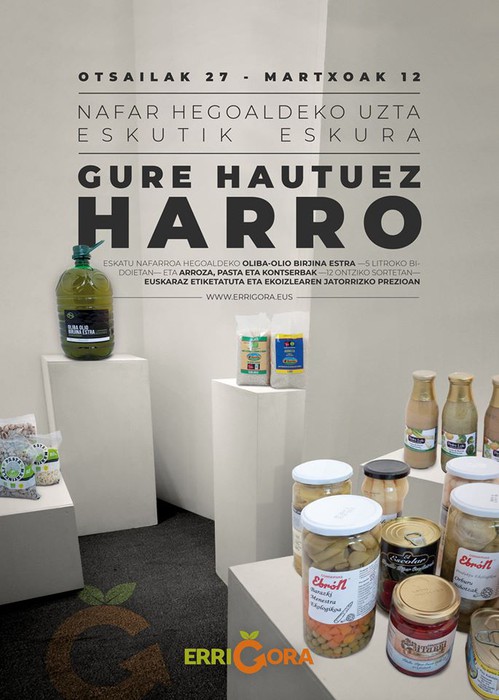 Nafarroa hegoaldeko oliba-olio birjina estra eta arroza, pasta eta kontserbak eskatu ahal izango dituzu, Nafar hegoaldeko uzta eskutik eskura kanpainaren baitan, martxoaren 12ra arte. Beti bezala, euskaraz etiketatuta eta, auzolanari esker, ekoizlearen jatorrizko prezioan.