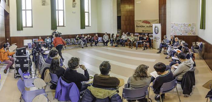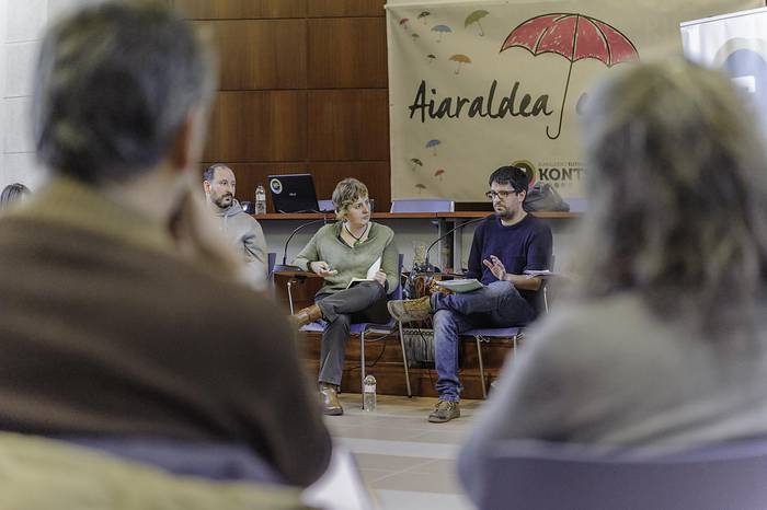 Bazkalostean Estitxu Eizagirre Argiako zuzendaria eta Manex Agirre euskaltzale eta kulturgilea izan ziren mahai-ingurua gidatu zutenak, Igor Elortza ezin izan baitzen bertaratu. Euskararen normalizaziorako diskurtso eta praktikak zer eta nola egin izan zituzten aztergai. Jardunaldiei amaiera emateko "Aiaraldea euskaldun, nola baina?" galderari erantzuten saiatu ziren partaideak talde txikietan hausnarketa dinamikak eginez, Aiaraldeko Euskalgintza Kontseiluak euskararen arnasguneak areagotzeko lehentasunak, aukerak eta oztopoak zehazteko, besteak beste.