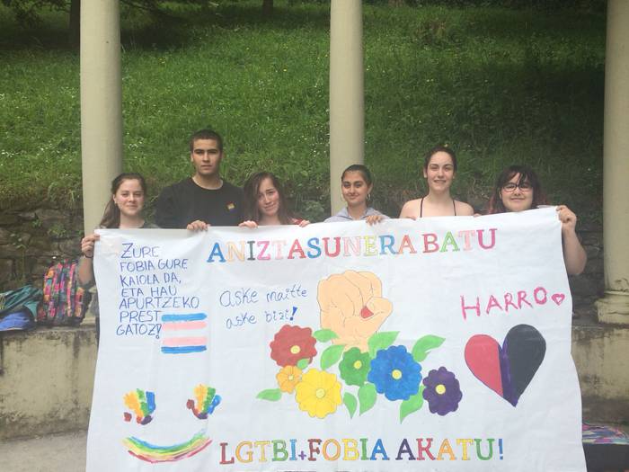 Hainbat ekimen egin dituzte eskualdean LGTBIQfobiaren Aurkako Nazioarteko Eguna dela eta. Aiaraldeko Mugimendu Feministak eta Ikasleok Zorrotz taldeak egitarau komuna aurkeztu dute. Goizean paroak egin dituzte ikastetxeetan eta sormena baliatu dute sexu aniztasunaren aldeko aldarriak plazaratzeko.