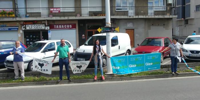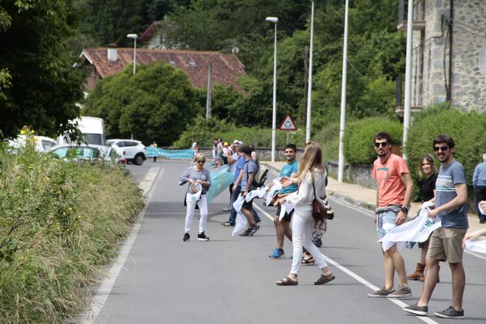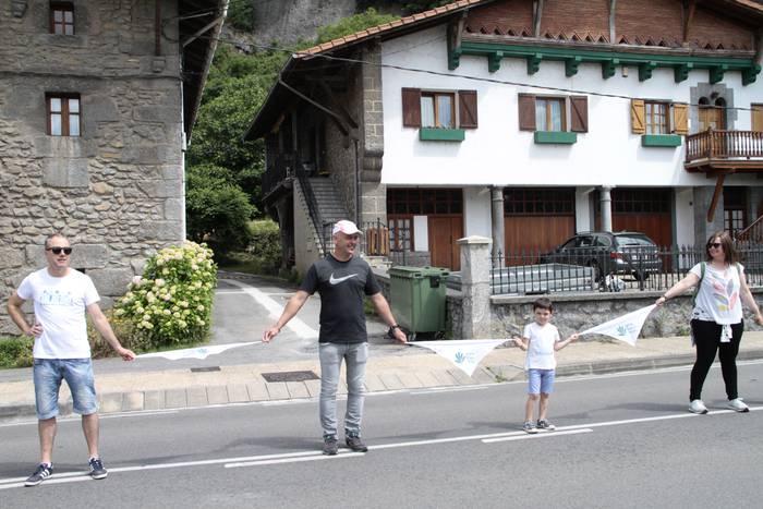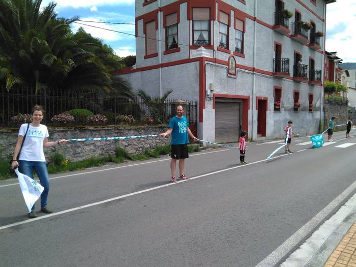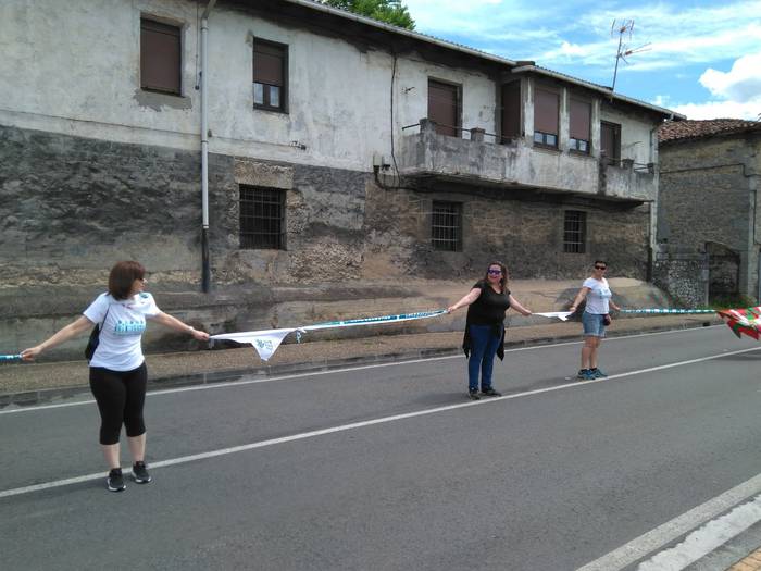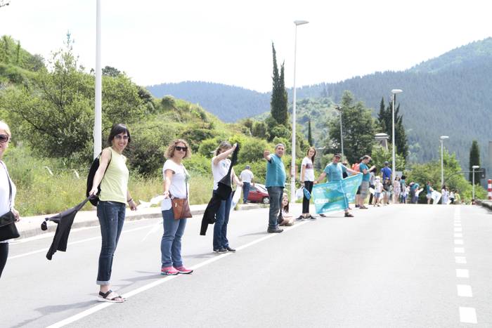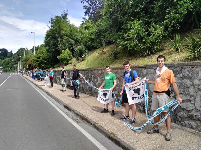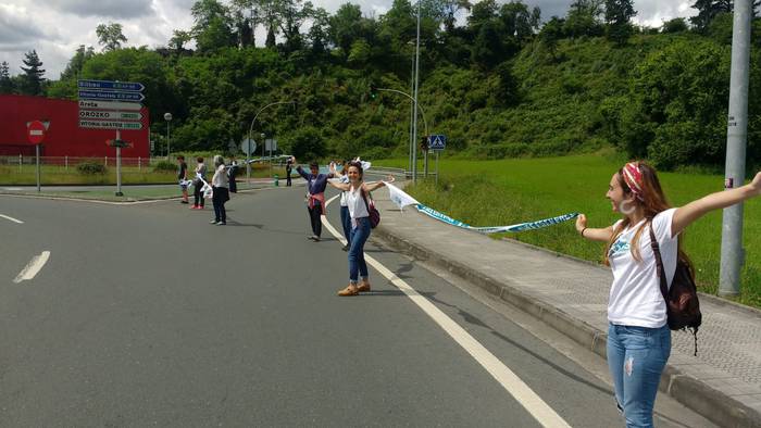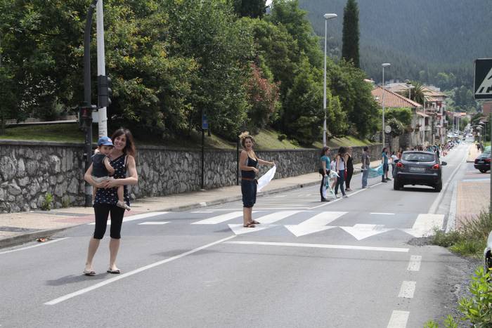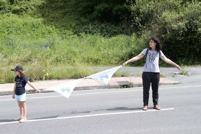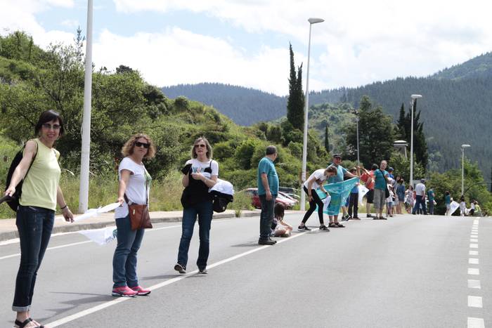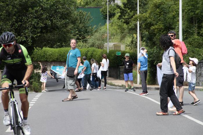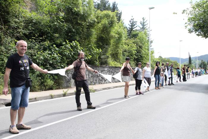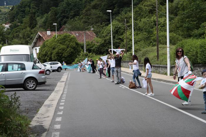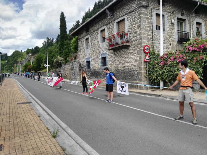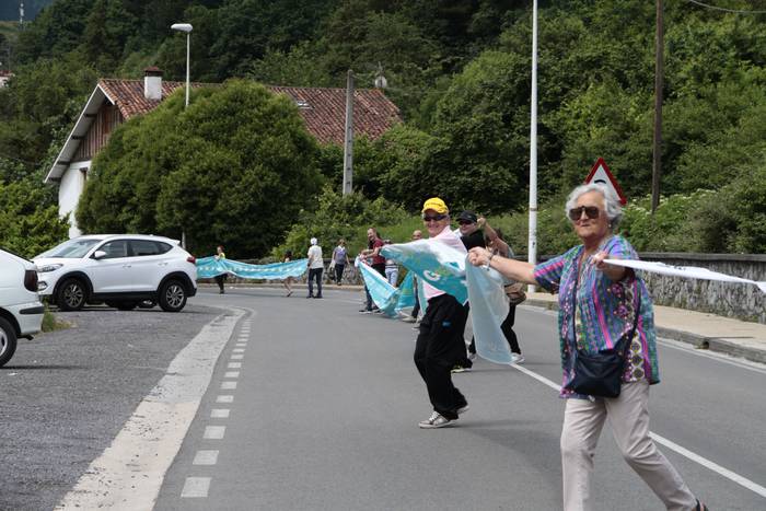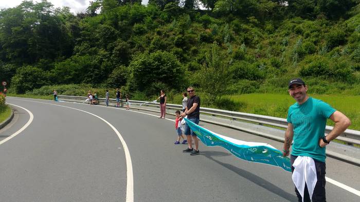 Aretako herritarrek goizean goiz hasi dira kalera ateratzen bere lekua hartzeko Gure Esku Dagok giza katean. Karparen inguruan elkartu dira eta gero errepidean banatzeko.