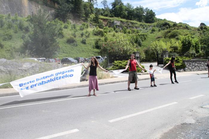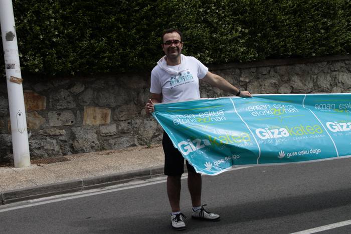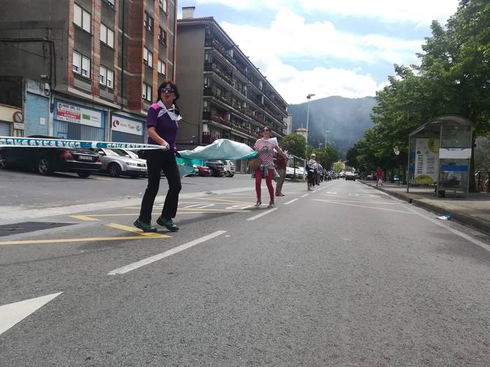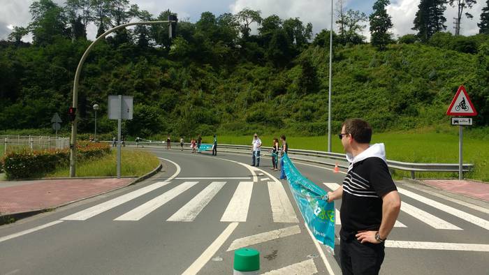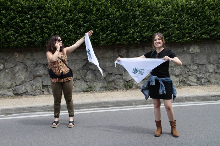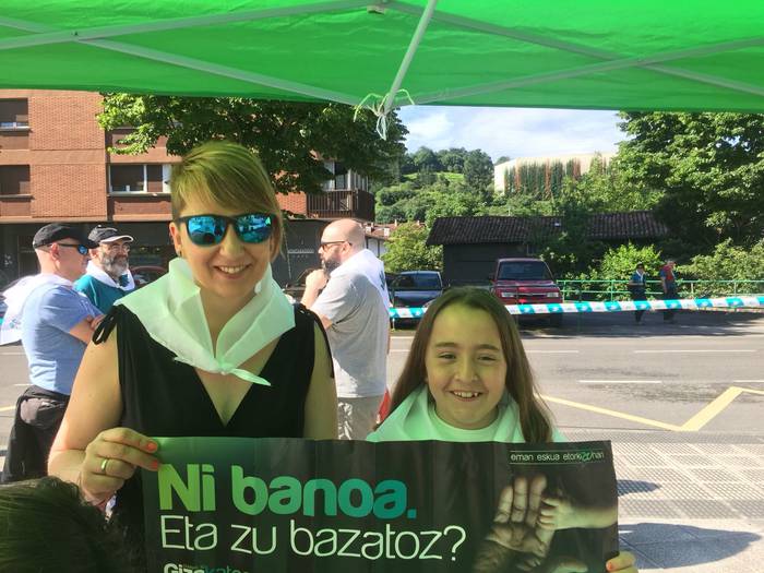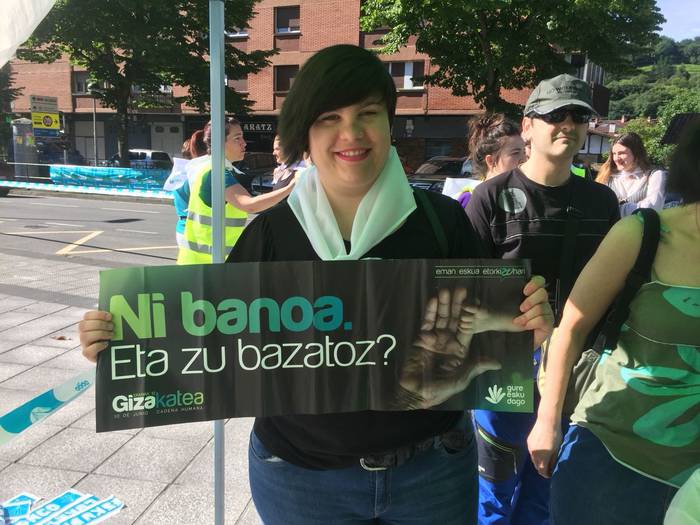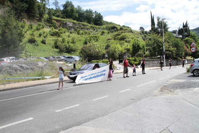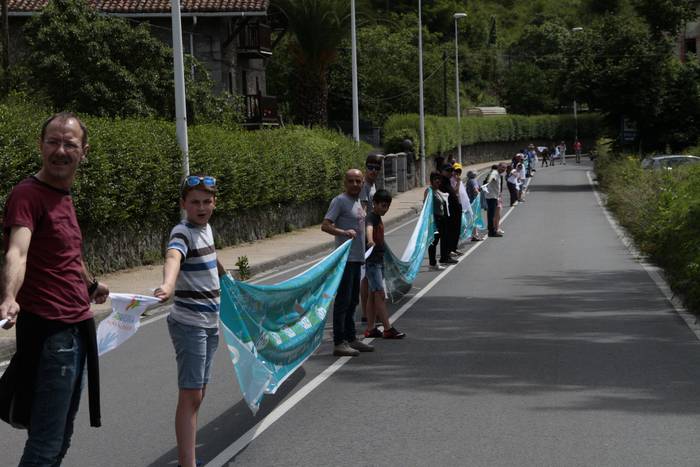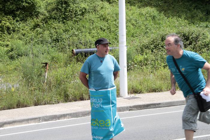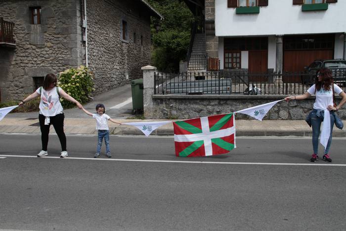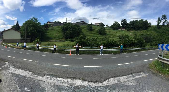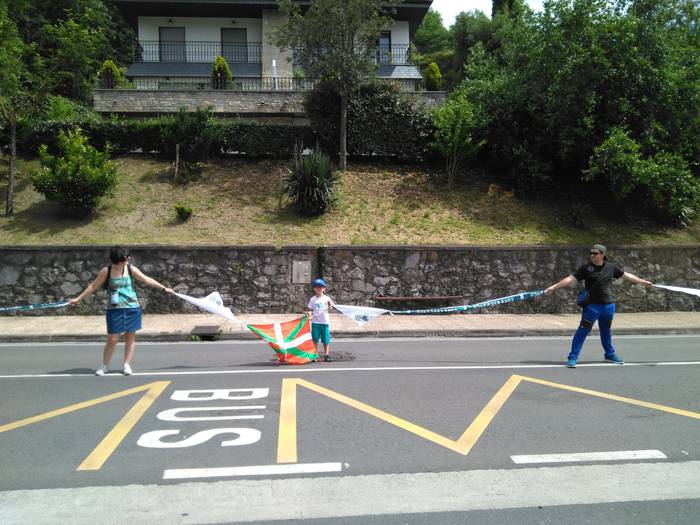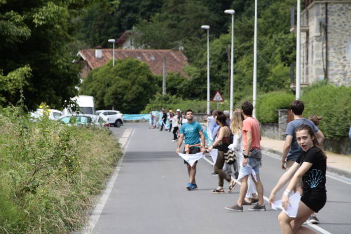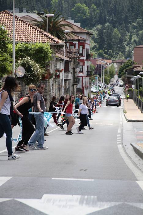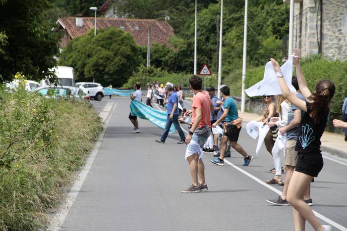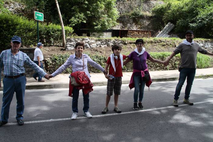 Aretako herritarrek goizean goiz hasi dira kalera ateratzen bere lekua hartzeko Gure Esku Dagok giza katean. Karparen inguruan elkartu dira eta gero errepidean banatzeko.