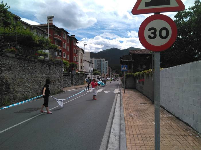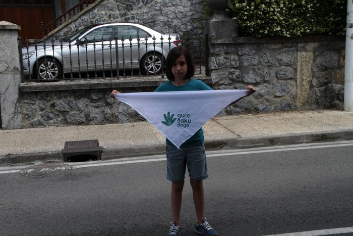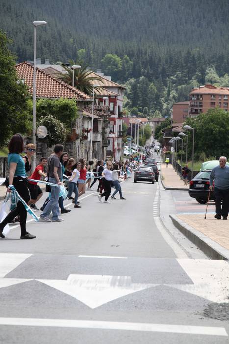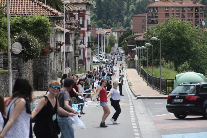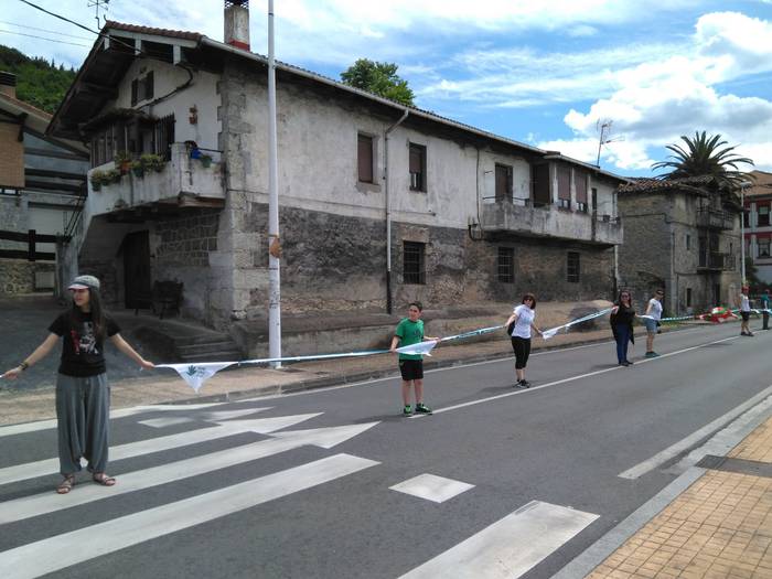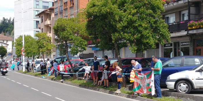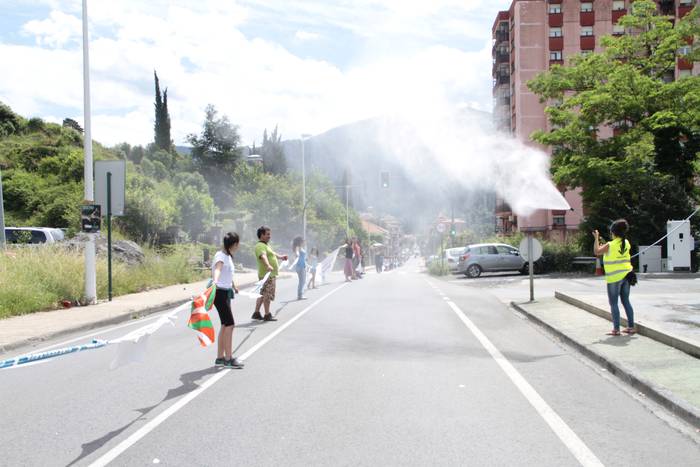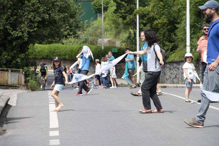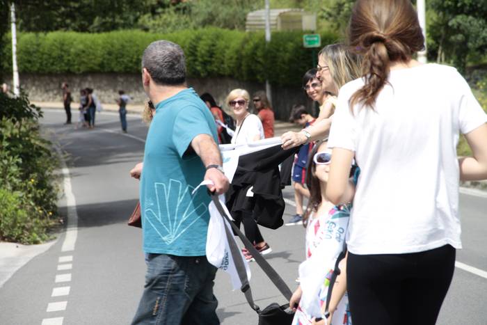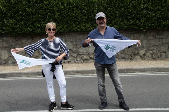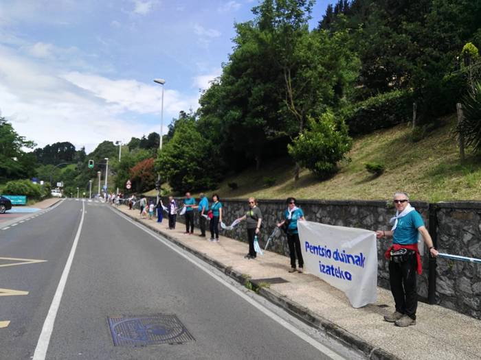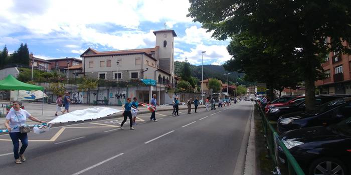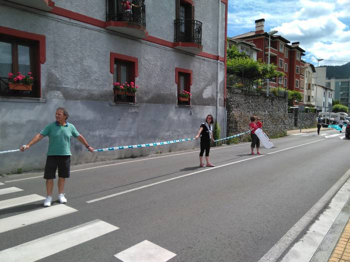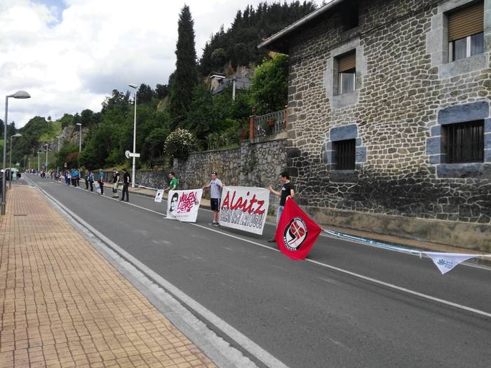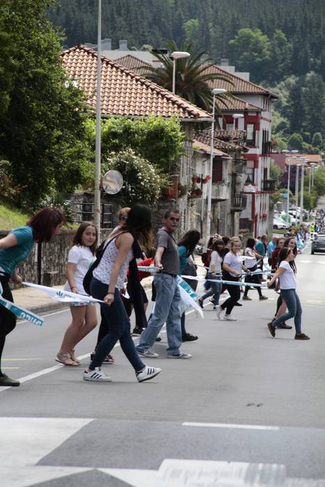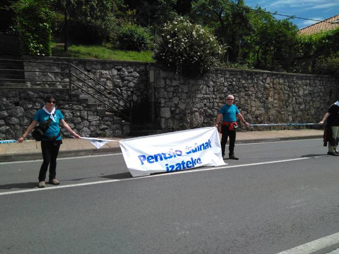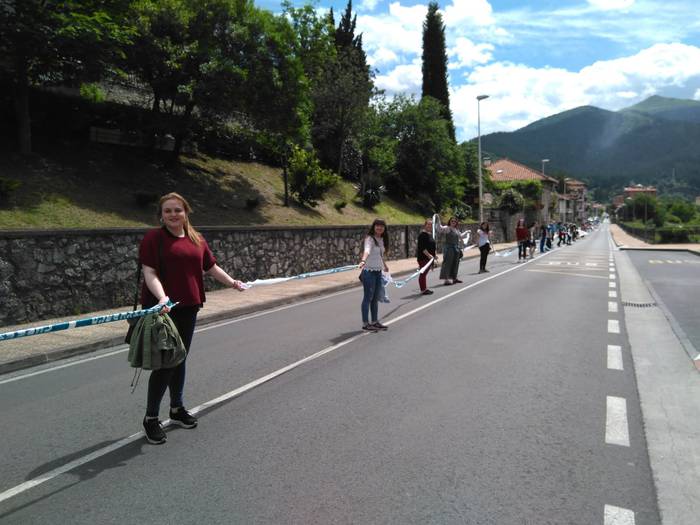 Aretako herritarrek goizean goiz hasi dira kalera ateratzen bere lekua hartzeko Gure Esku Dagok giza katean. Karparen inguruan elkartu dira eta gero errepidean banatzeko.