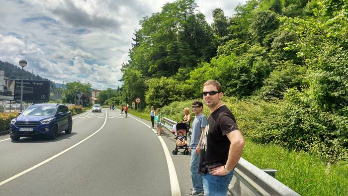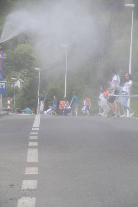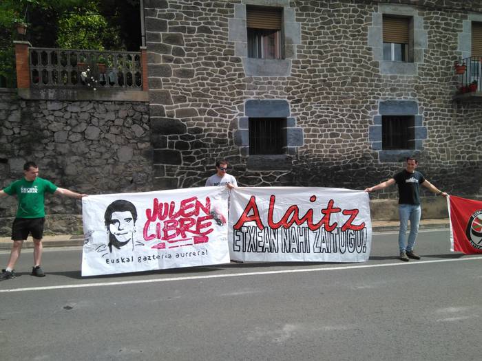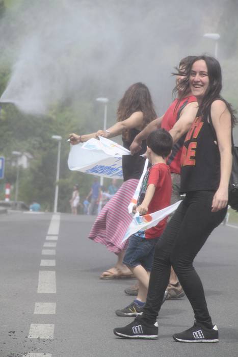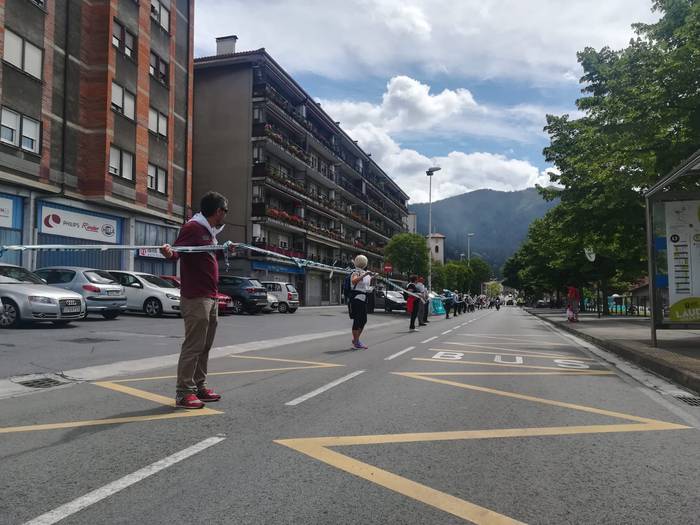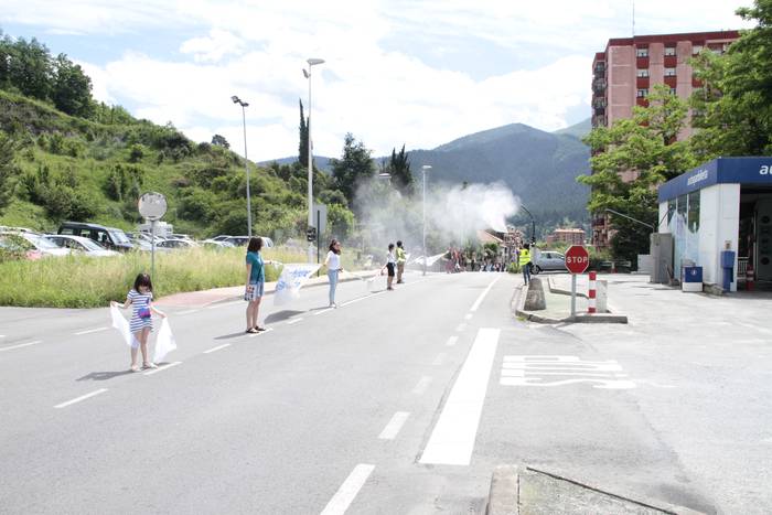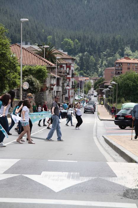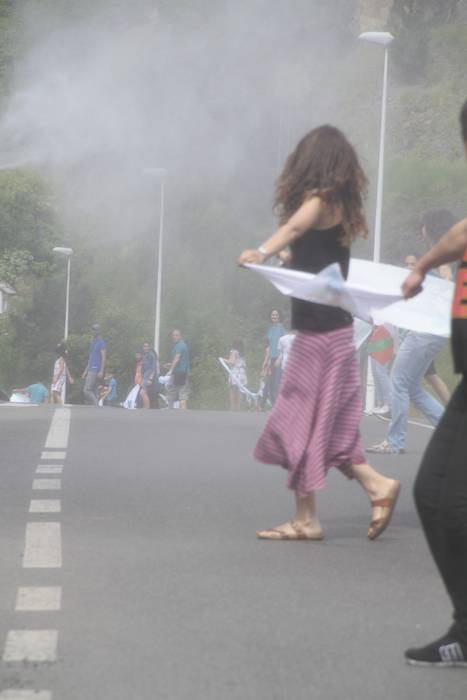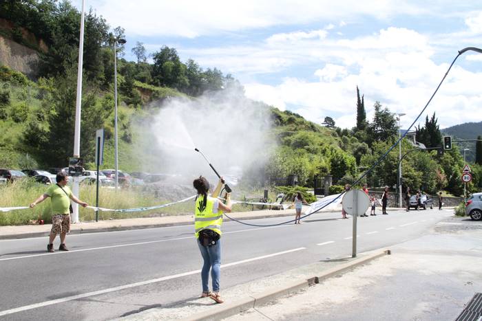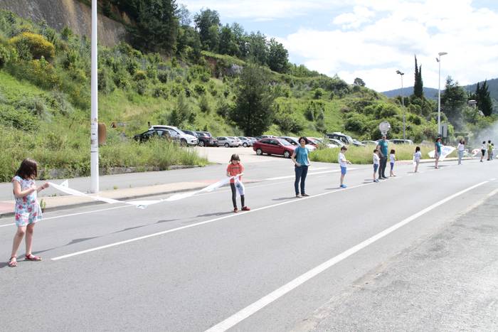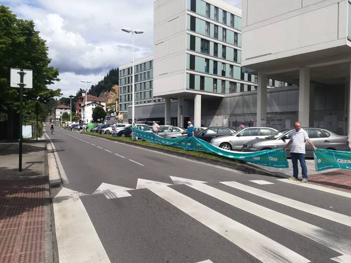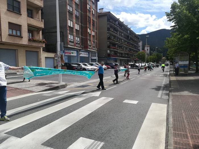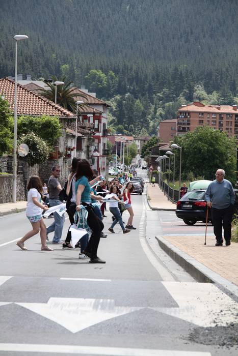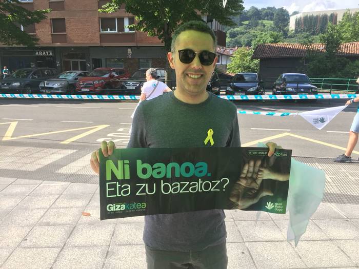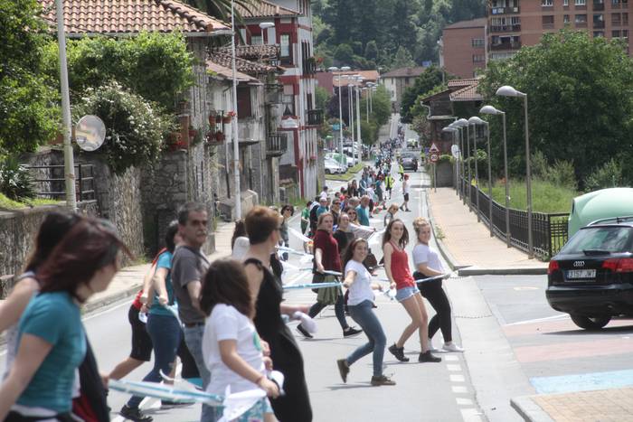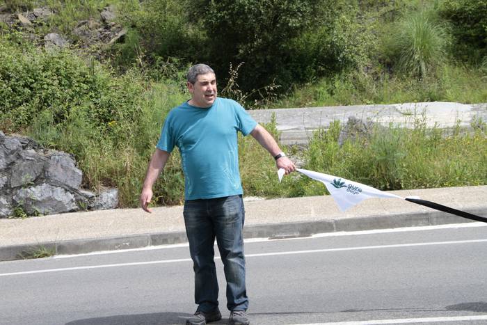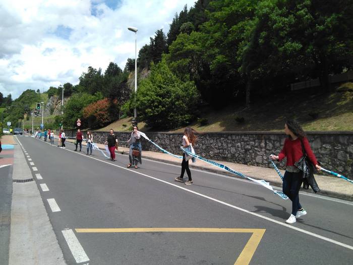 Aretako herritarrek goizean goiz hasi dira kalera ateratzen bere lekua hartzeko Gure Esku Dagok giza katean. Karparen inguruan elkartu dira eta gero errepidean banatzeko.