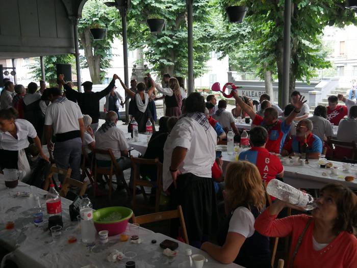 Entzierroa, "erraldoiketa" eta herri bazkariak izan dira nagusi festetako bigarren egunean. Gauean ez du etenik izango festak, kontzertu andana egongo baitira.