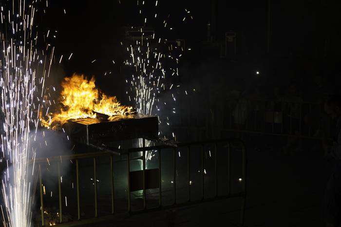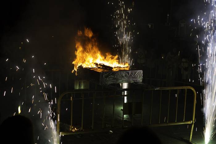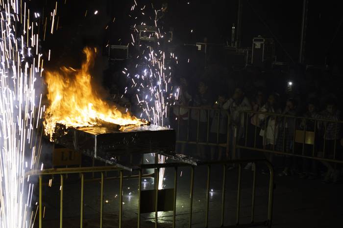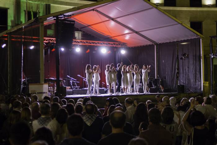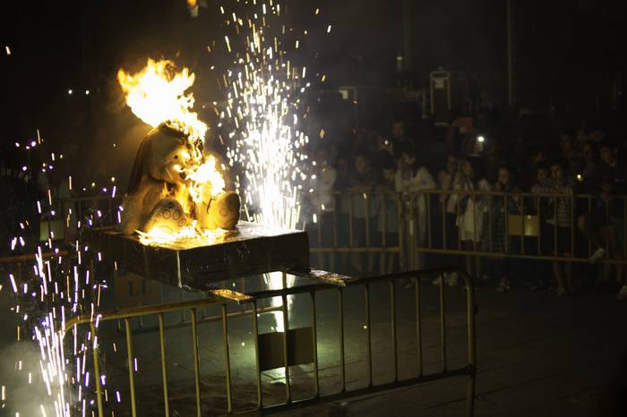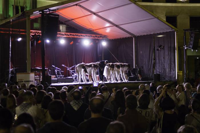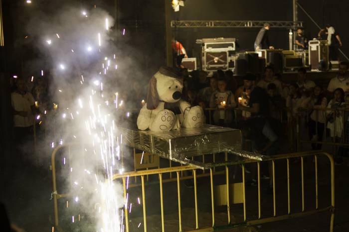 Esne Potak talde laudioarrak ere kontzertua egin zuen Malekoian eta musika isildu bezain laster, ehunka lagunek segizioa osatu zuten Erroketxuren atzean. 00:00ak aldera suak txikitu zuen txakurra eta jende oro etxera itzuli zen, Laudioko Jaien aurtengo edizioa agurtuta.