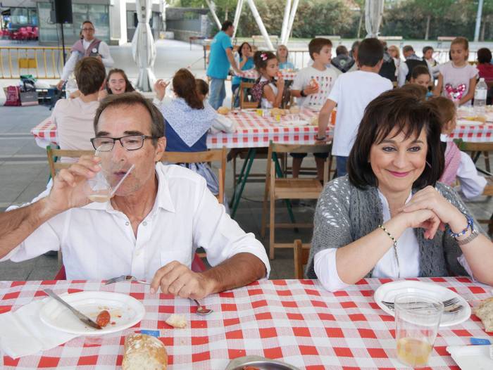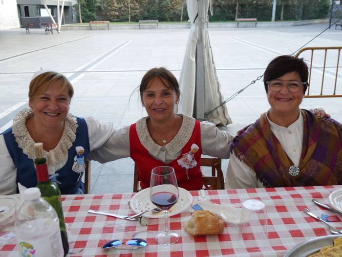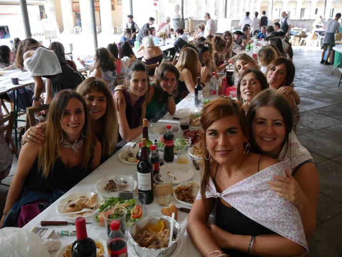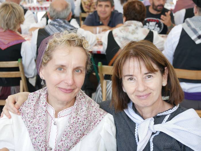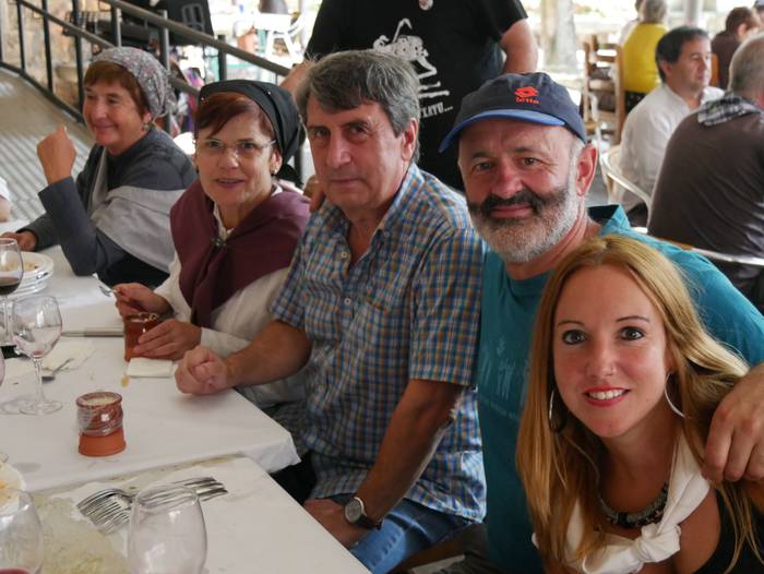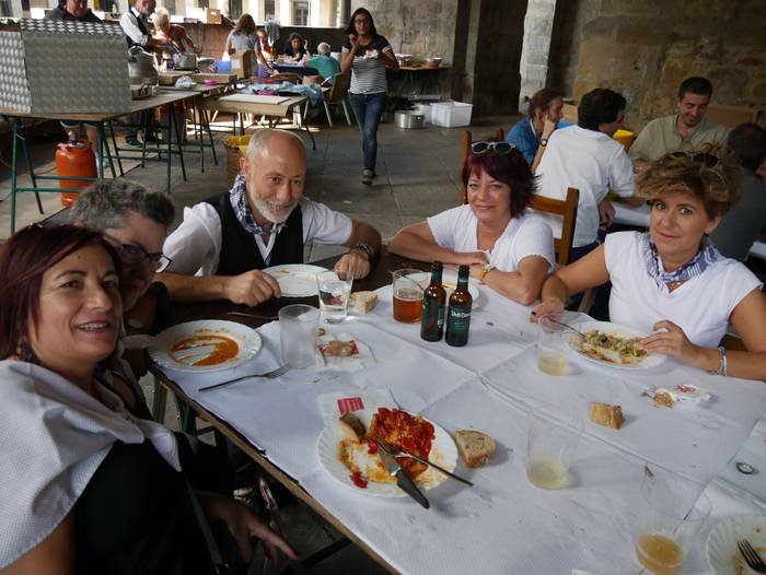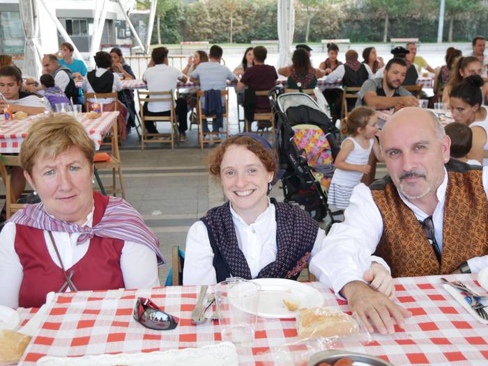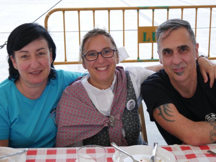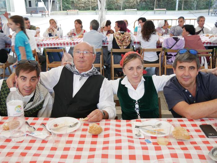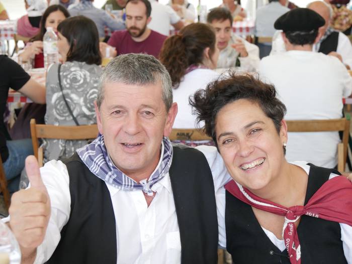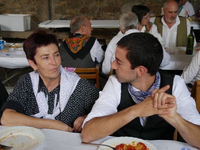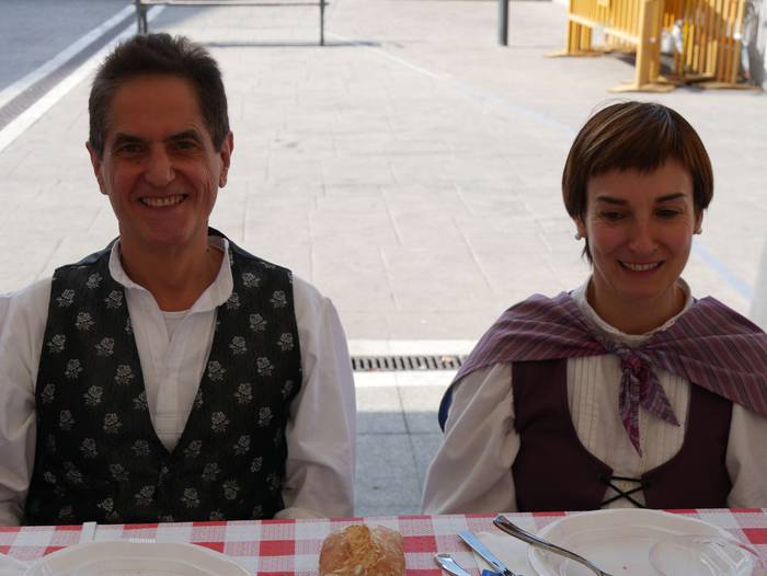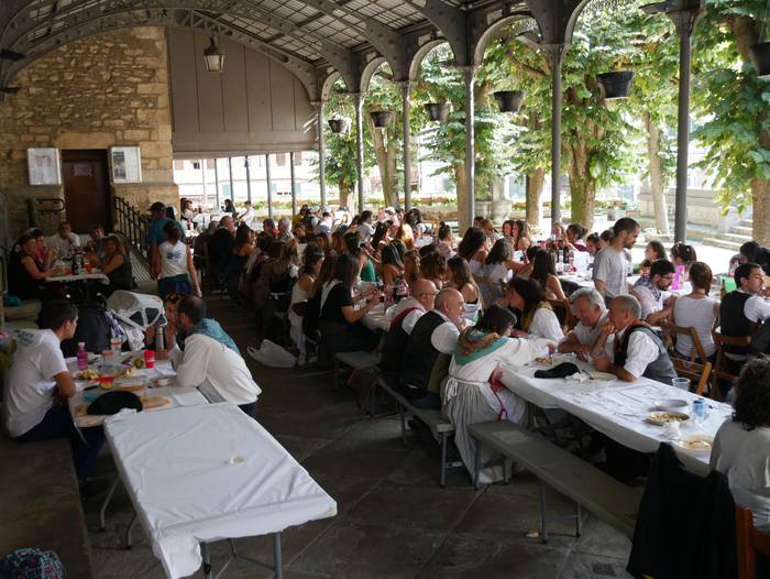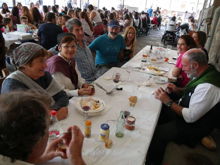 Euskararen jaiaren baitan bi herri bazkari egon ziren atzo: Itxarkundiaren 40.urtemugako ospakizuna -sagardotegi menua- eta elizako arkupeetako bazkaria.