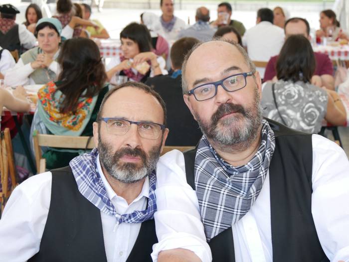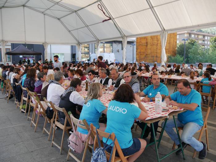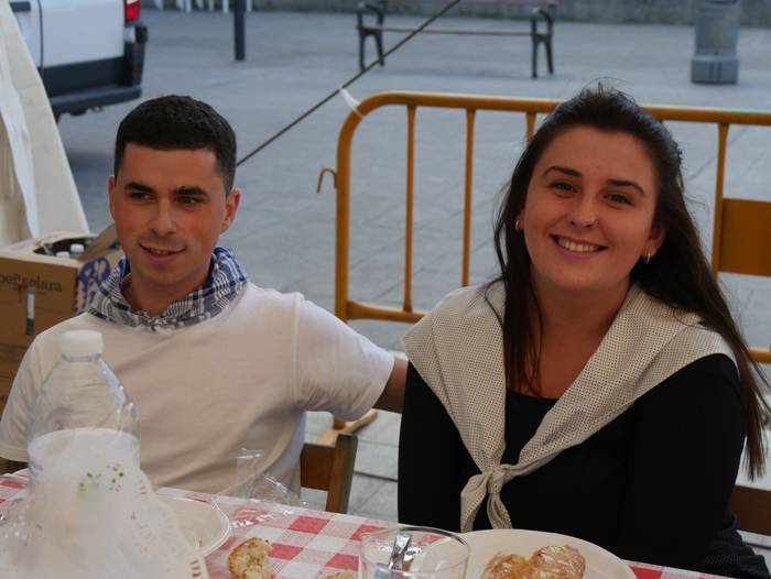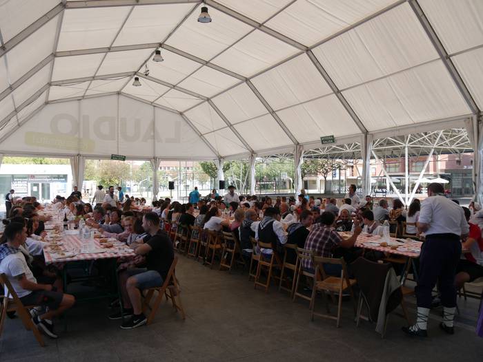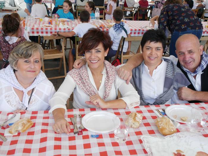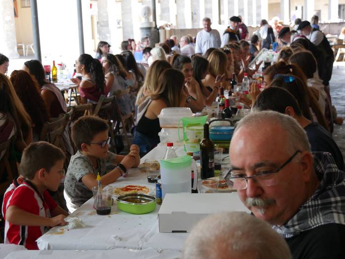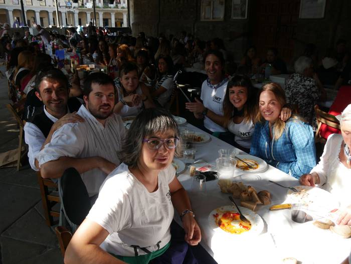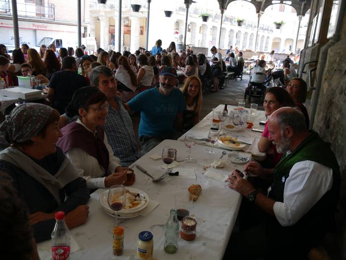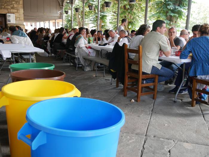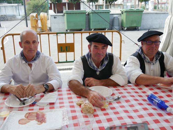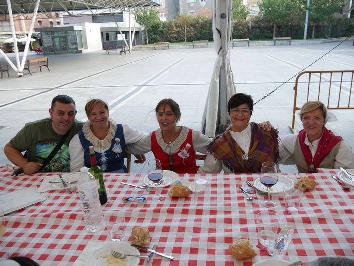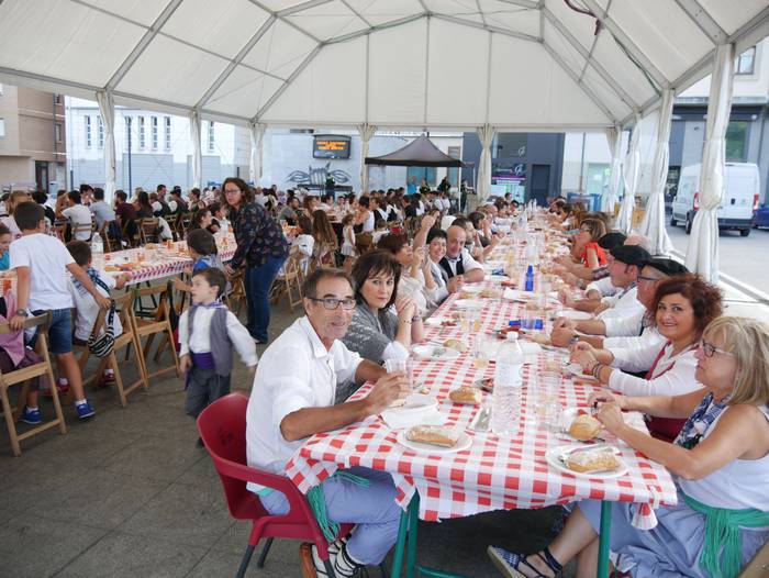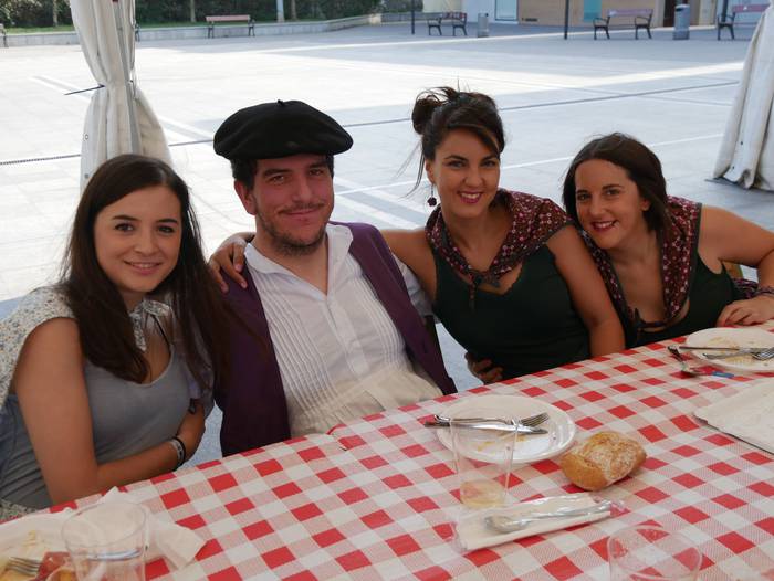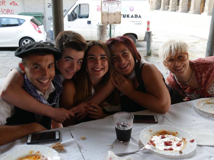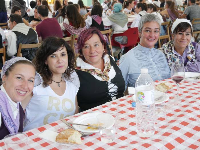 Euskararen jaiaren baitan bi herri bazkari egon ziren atzo: Itxarkundiaren 40.urtemugako ospakizuna -sagardotegi menua- eta elizako arkupeetako bazkaria.