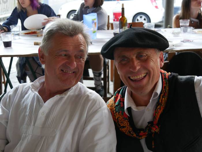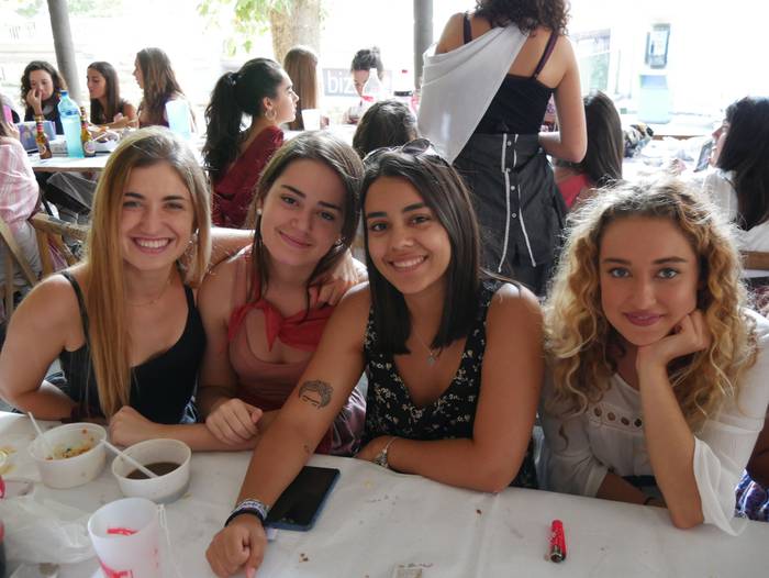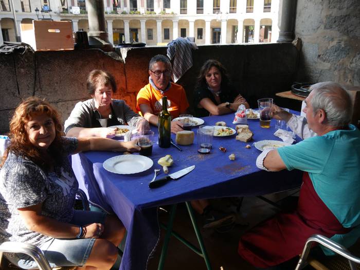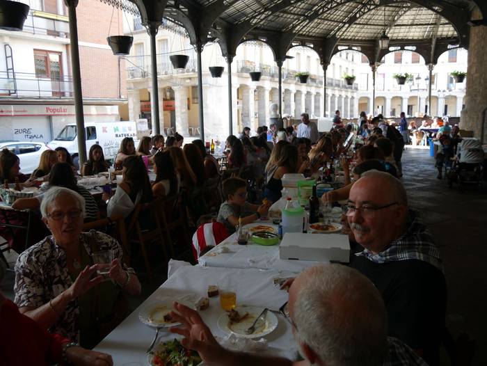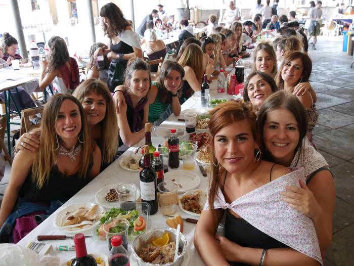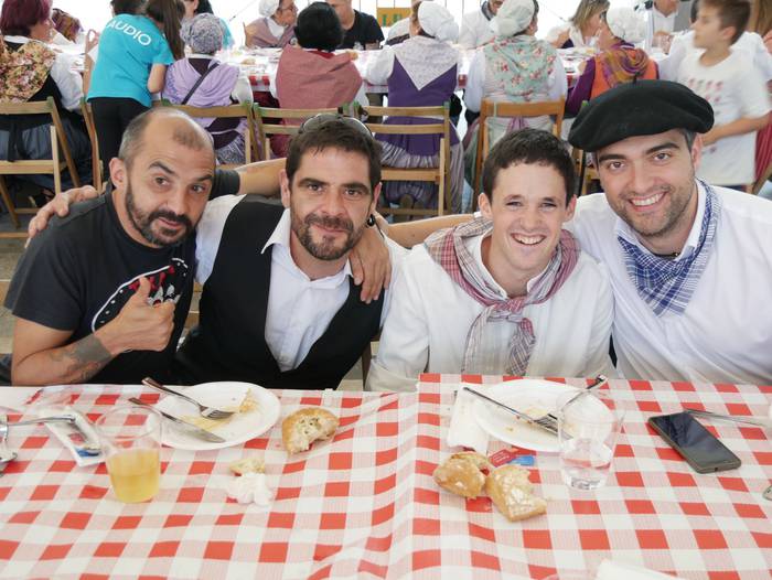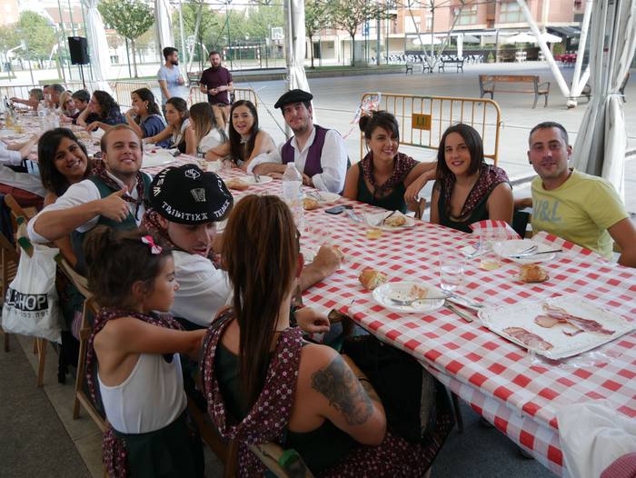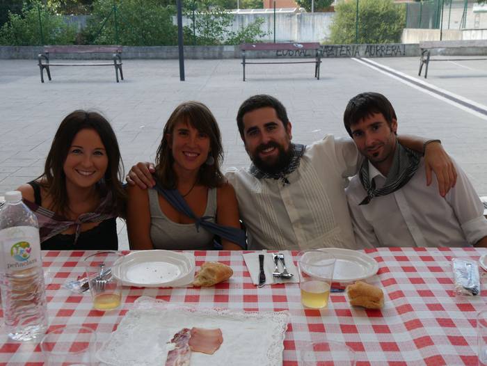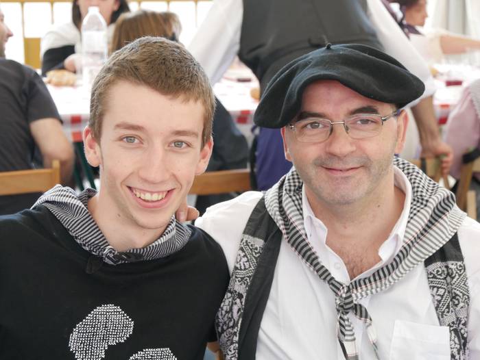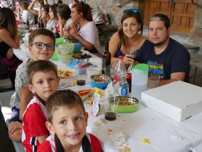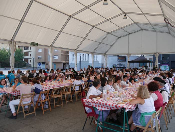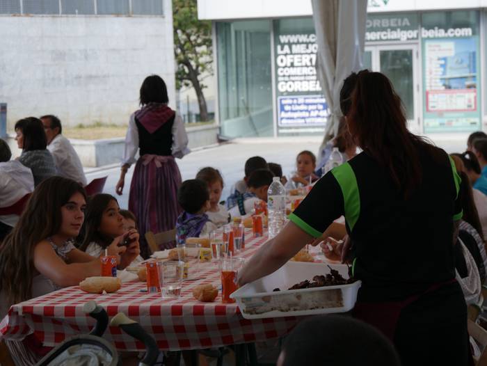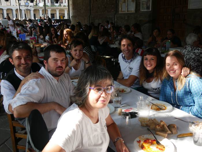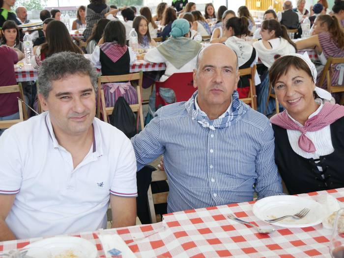 Euskararen jaiaren baitan bi herri bazkari egon ziren atzo: Itxarkundiaren 40.urtemugako ospakizuna -sagardotegi menua- eta elizako arkupeetako bazkaria.