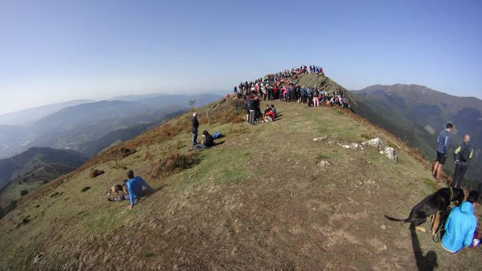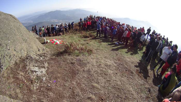 Igandean izan zen mendi zeharkaldia. Goikoganeko gailurrean egin zuten omenaldia, mendi istripuan hildako gaztea oroitzeko.