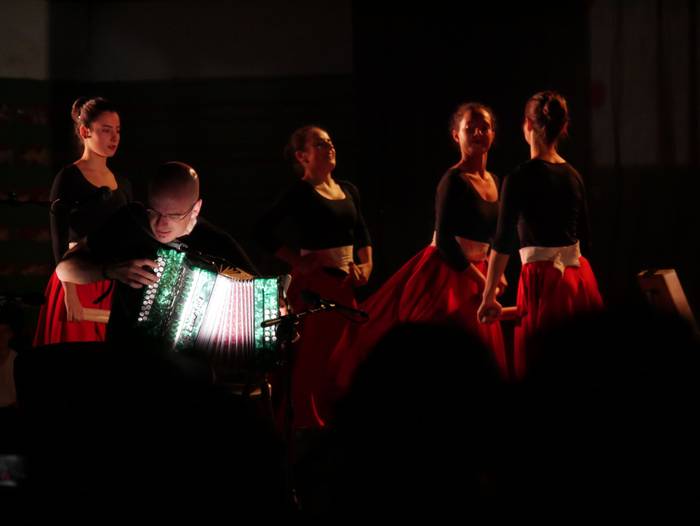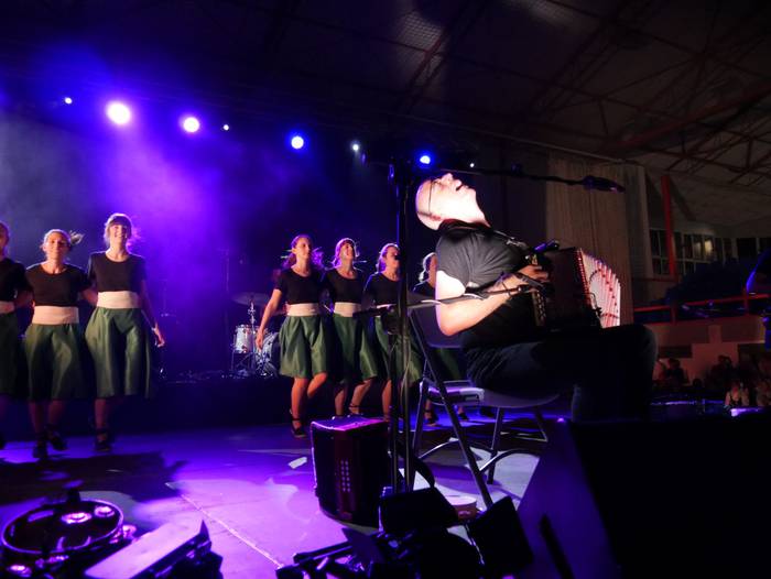 Kontzertu berezia izan da, dudarik gabe. Dozenaka dantzari igo dira taula gainera (Itxarkundiakoak eta Korrontzirekin aritu ohi diren Oinkari taldekoak). Horrez gain, gonbidatu berezi bat egon da: Aitor Aspuru trikitilari eta pandero-jotzaile amurrioarra. Leturia pandero-joltzaile mitikoa ere igo da oholtzara, hainbat abesti erritmo biziz hornitzera. Kiroldegian barrena kalejira bat eginez amaitu dute dantzaldia.