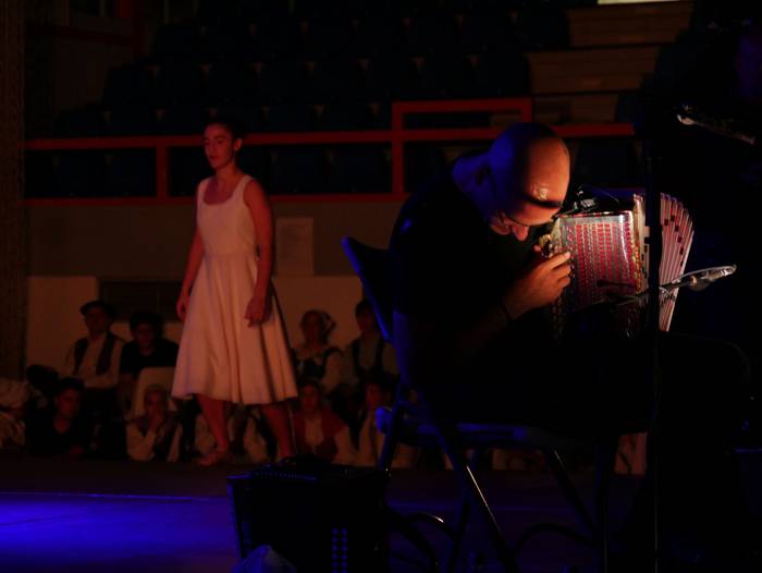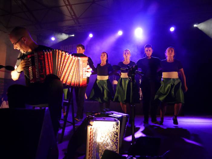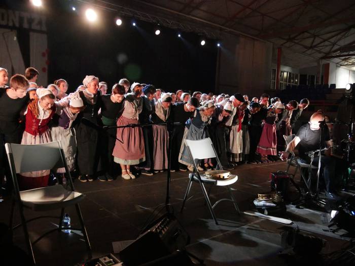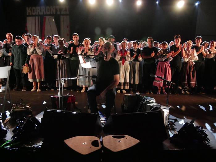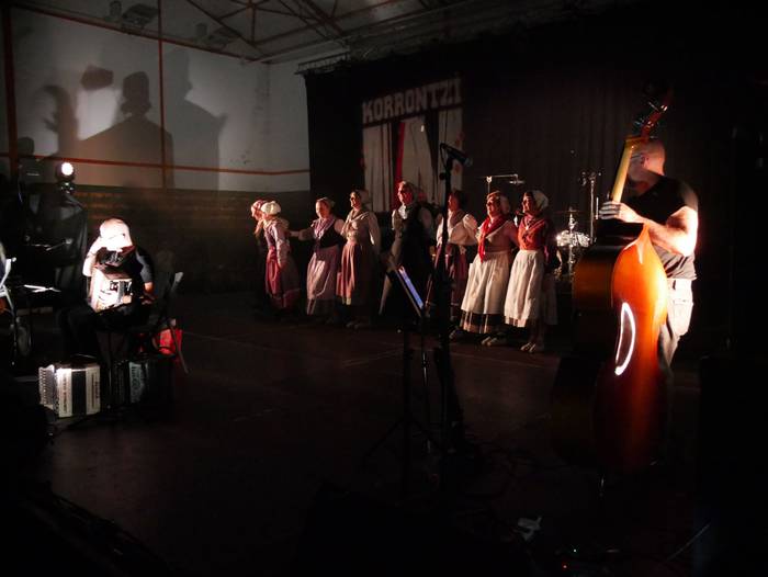Gaur arratsaldean eskaini dute Korrontzik eta Itxarkundiak denbora asko prestatzen zeramaten ikuskizun bateratua. Laudioko dantza taldearen 40. urteurrenaren barruan eskaini dute saioa. Laudioko kiroldegia jendez bete da, ehunka lagun bertaratu baitira euskal musika eta dantzak uztartu dituen emanaldia ikustera.