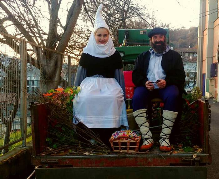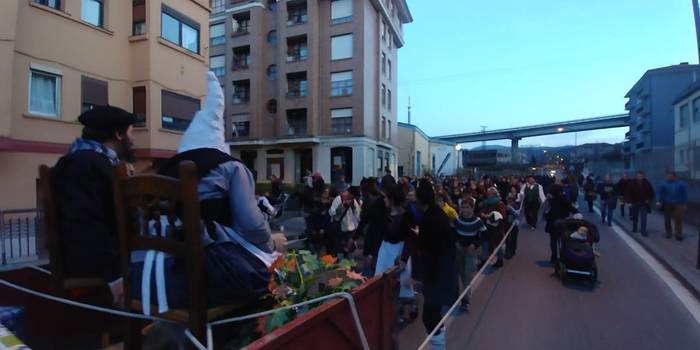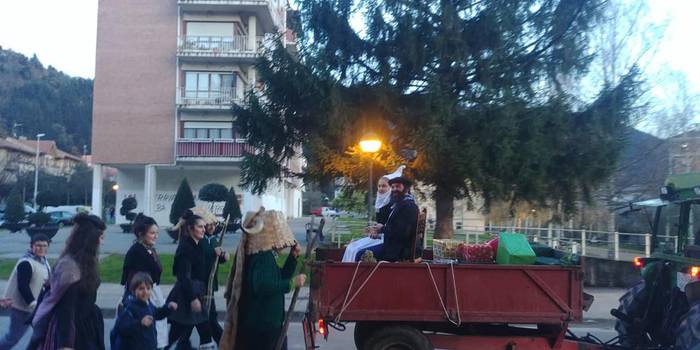 Olentzero eta Maridomingi herritarrek lagunduta iritsi ziren Aretara. Kalejiran bazterrak girotu ondoren, Kultura Etxera joan ziren.