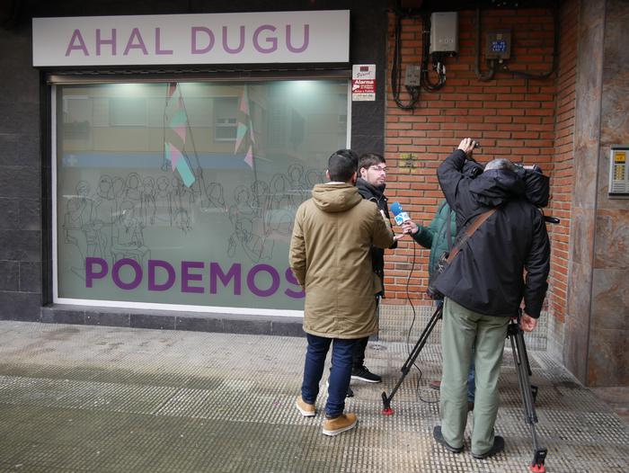 Lander Martinez bilera bat izateko bertaratu da Ahal Dugu Podemosen egoitzara, eskualdeko zenbait kiderekin elkartzeko, irudietan ikus daitekeen moduan.