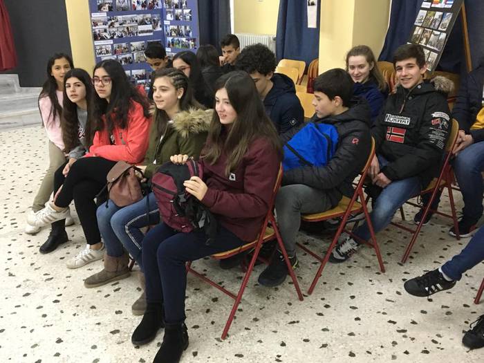 Greziako gazteei erakutsi diete, aurkezpen bidez, Euskal Herria. "Aireportuan harrera egin ziguten", kontatu dute.