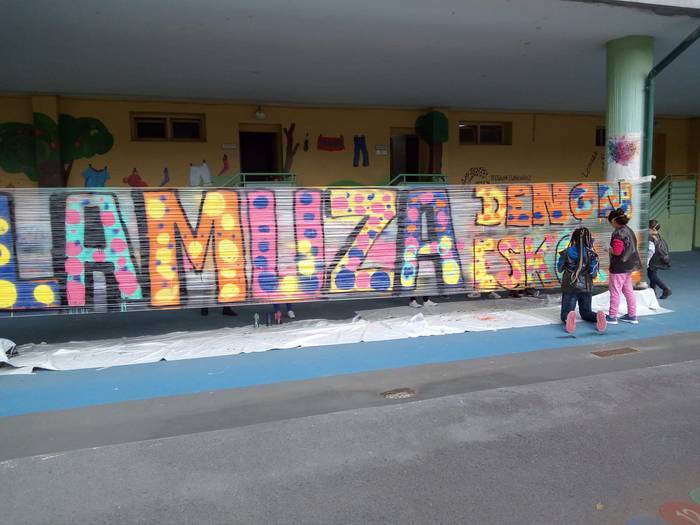 Graffiti tailerraren bigarren saioa egin dute asteburuan Laudioko Lamuza Ikastetxean. Dozenaka umek parte hartu dute ekimenean. Ikastetxearen 50. urteurrena ospatzeko atondu duten egitarauaren baitan antolatu dute jarduera.
