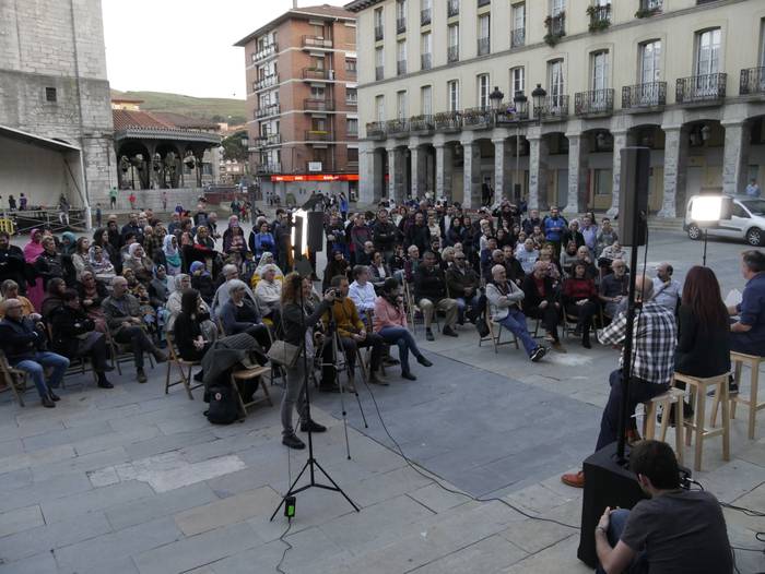 Laudioko alkateordea den Amets Meatzak gidatu zuen saioa. Darocan preso dagoen Galder Barbadori elkartasun keinu bat eginez hasi zuen ekitaldia, eta Ainhize Solaunek hartu zuen hitza gero.