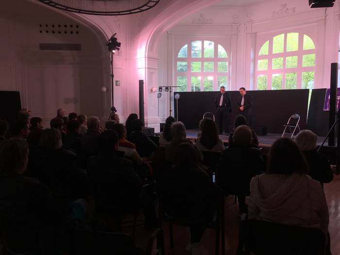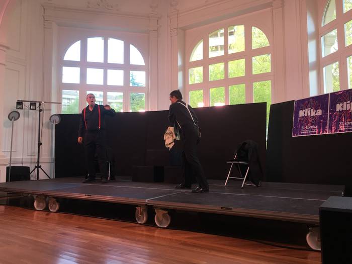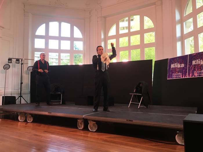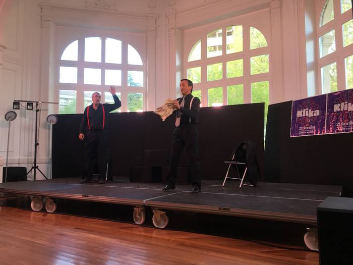 Bukatzeko, atzo ere baina 19:00etan, Mikel Martinez eta Patxo Telleria antzezleek Desentxufatuak lana eraman zuten Kasinoko oholtzara.