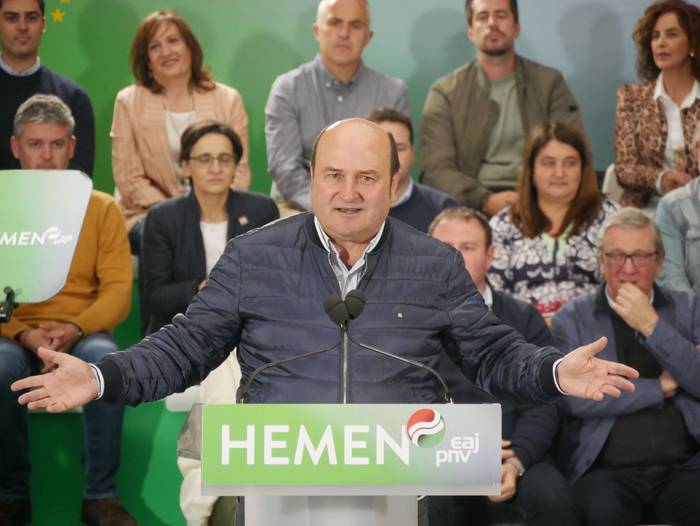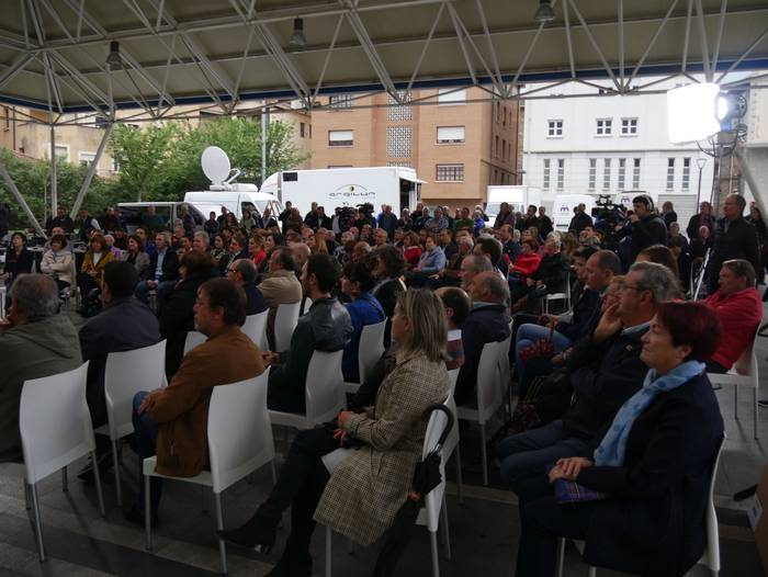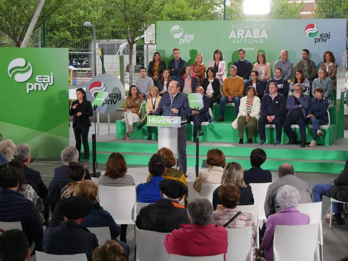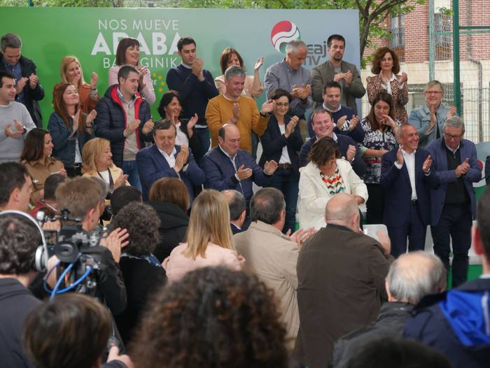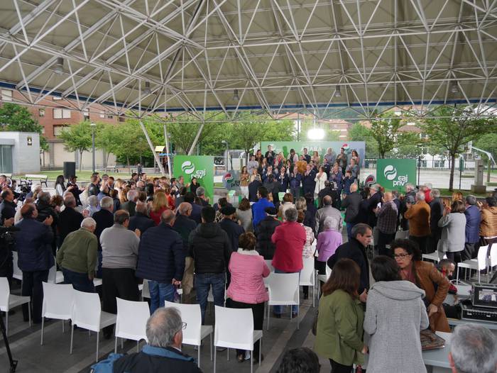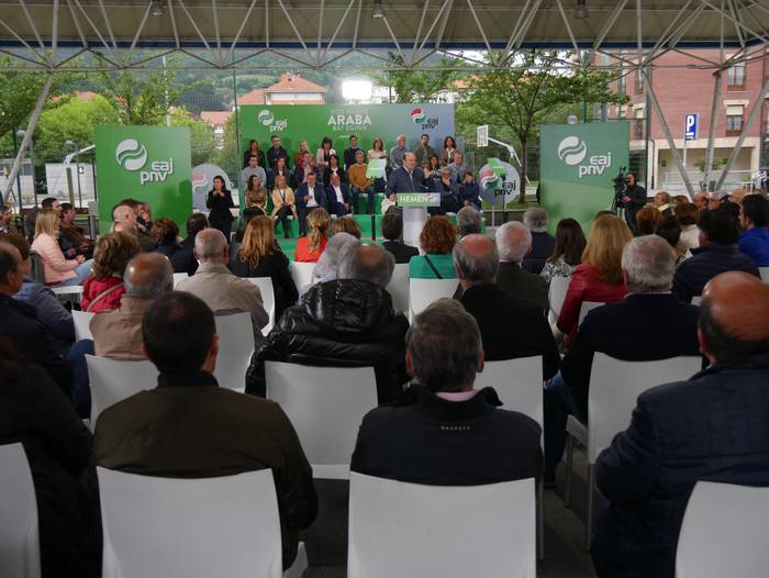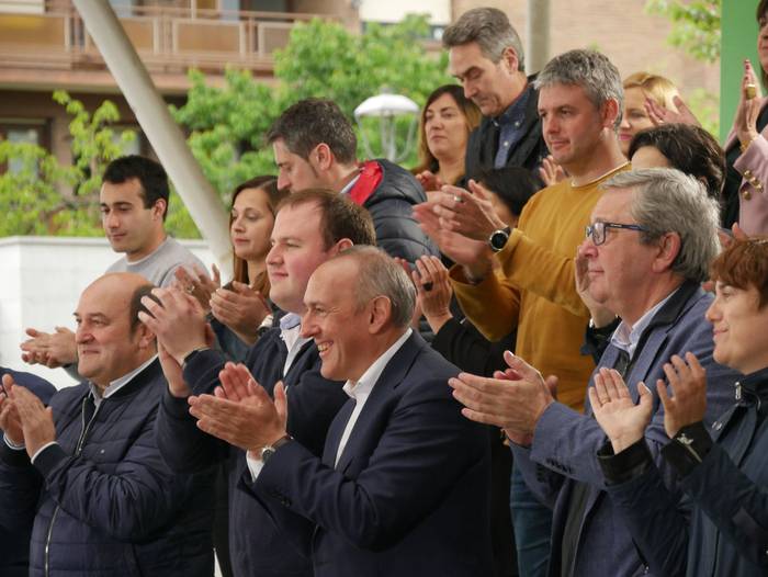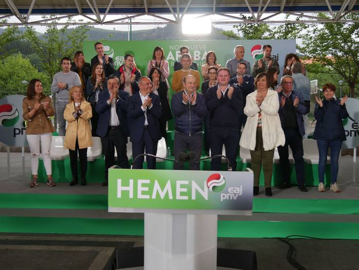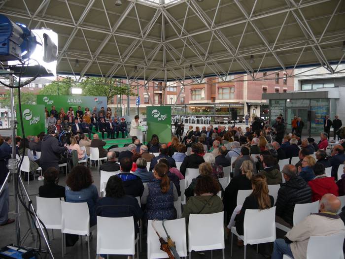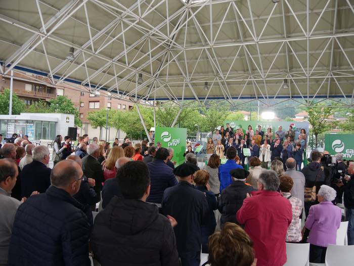 Andoni Ortuzar izan da hitza hartzen azkena. Euskadi Buru Batzarreko lehendakaria alderdiei zuzendu zaie. EH Bilduri "mamotaren egunean" bizitzea leporatu dio, "egunero jaikitzea ezer gertatu eta egin gabe". Koalizio abertzaleari ezintasuna EAJri leporatzea egotzi dio: "Laudio motore ekonomiko eta soziala zen Aiara eta Bizkaiko zati batentzat. Orain, aurrera ez goazenaren sentsazioa dugu. Bildurentzat gobernatzea gestioa baino, indigestioa da". Zentzu horretan, enpresei arreta jarri behar zaiela nabarmendu du Ortuzarrek, "bestela ez dago enplegurik eta". Apirilaren 28ko hauteskundeen emaitzetan oinarrituta luzatu dio mezua PPri: "EAJren kudeaketari esker iragana da herri honentzat Maroto". Peter Pan bezala, Alderdi Popularra lurralde magikoaren bila dabilela aipatu du: "Apirilaren 28an bezala irabazi behar dugu maiatzaren 26an".