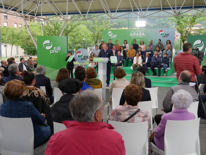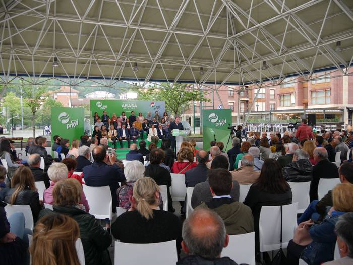 Ramiro Gonzalez Arabako Diputatu Nagusirako zerrendaburuak hartu du lekukoa gero. Jeltzaleen gidaritzari esker Foronda, AP1 eta AP68 bidesarietako hobariak, Garoñaren itxiera edota AHTa bezalako aurrerapausoak eman dira, bere iritziz. "EAJ da Arabako etorkizuna bermatzen duen alderdia. Araba Euskadiago bihurtu nahi dugu, eta Euskadi Europarrago". Araba abanguardia izatea izango dute helburu. Tokikotasunean zentratuta, Aiarako industria lider bihurtzearen beharrezkotasunaz mintzatu da, "hori da etorkizuna". Hala, maiatzaren 26an bi aukera egongo direla iradoki du: desegonkortasuna edo bermea.