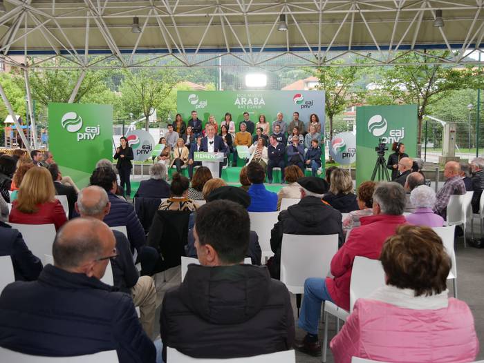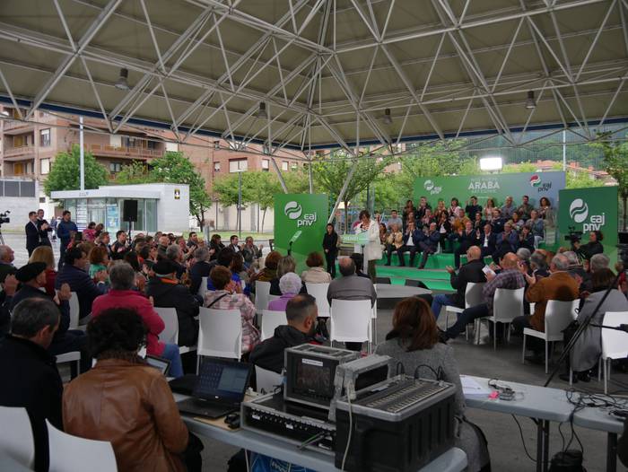 Marian Olabarrieta Arabako Batzar Nagusietarako hautagaia igo da oholtzara ondoren. Laudion hasi zuen ibilbide politikoa Olabarrietak, eta jeltzaleen eredua defendatu du: "Kaleak, herriak, probintzia eta lurraldea hobetzeko". Laudio, Aiara, Amurrio, Artziniega eta Okondoko EAJren lana goraipatu du: "EAJren ereduarekin egin dugu lan. Gure programak serioak, errealistak eta pertsonekin konprometituak dira". Arabako Foru Aldundian eskuratutako lorpenak aipatu ditu jarraian, etxez etxeko laguntza, egoitzetako plazak ugaritzea eta abar. "Gure helburua Araba eta Aiarako herritarrentzat proiektu ilusionagarriak errealitatera eramatea da", erantsi du.