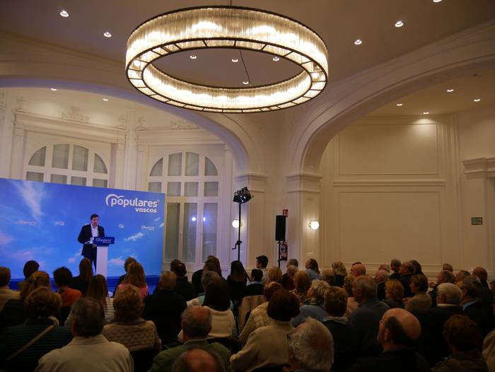 Beste alderdiei kritikak Alfonso Alonsoren esku utzi zituzten popularrek. Kasinoari aipamena eginez, EAJ kritikatu zuten: "Ez dugu EAJk agintzea nahi. Hau ez da markesen finka, ezta nazionalistena ere". Apirilaren 28ko hauteskundeetako emaitzak txartzat jo zituen PPko liderrak, baina Espainiako mapa politikoaren irakurketa egin zuen hala ere: "Pedro Sanchezek gobernua osatu nahi du, baina ez digu ezer kontatu nahi. Podemos, EAJ, EH Bildu eta Katalanuniar independentistekin akordioa lortu bazuen behin, zergatik ez bihar?". Edozelan ere, espainiartasuna goraipatzearekin batera, herritarrak PP bozkatzera deitu zituen: "Euskalduna izan arren espainiarra naiz, hori da espainiarra izateko modurik eleganteena".
