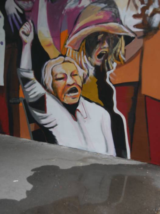 Irantzu Lekuek margolanaren nondik norakoak aipatu zituen: "Gurpildun aulkian amona bat jarri dugu, gorputz eta izaera ezberdinetako emakumeak irudikatu ditugu, eskuen arteko emakume korrikalariak indarra adierazten du... Eta koloreen bidez, sexu eta genero aniztasuna islatu dugu". Nola Laudioko Udalak hala artistak, ekimenera batutako herritarren parte hartzea eskertu zuten.