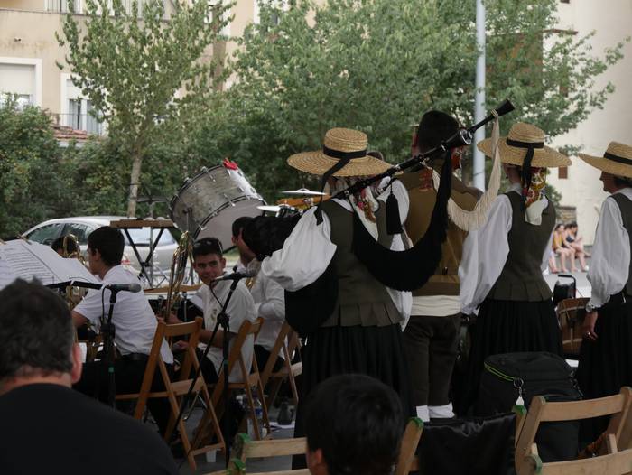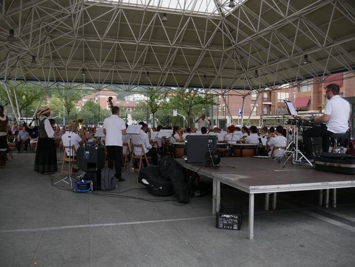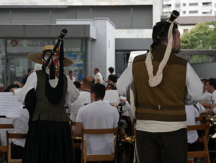“Galicia Calidade” emanaldia eskaini zuten Laudioko Galiziar Zentroak eta Done erroke Musika Elkarteak atzo arratsaldean Aldai plazan. Abesti ugari jo zituzten, bandaren ohiko instrumentuak galiziar soinu-tresnekin uztartuta. Ehundik gora herritar bertaratu ziren ikuskizunera.