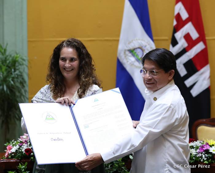 Kanpo-harremanetarako ministroaz gain, omenaldi ekitaldian izan ziren, Luis Morales kultura ministroa, Amalia Coronel Gobernantza Ministroa, Martha Ruiz defentsa ministroa, Sidhartha Marin, Presidentearen Aholkularitzarako Ministroa, Ramona Rodriguez Managuako Unibertsitate Autonomoko (UNAM) errektorea, Maritza Espinales Nikaraguako Batzar Nazionaleko Lehendakariordea hainbat diputaturekin, eta kultura munduko hainbat pertsona. Guztien zorionak jaso zituen Gentzanek ekitaldi hunkigarriaren amaieran.