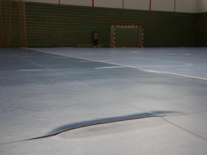 Berez, PVCko azalera apurtzen eta irekitzen hasi da zenbait puntutan. Hori dela medio, kantxako erdiguneko zati bat hesitu da eta erabiltzaileek saihestu behar dute.