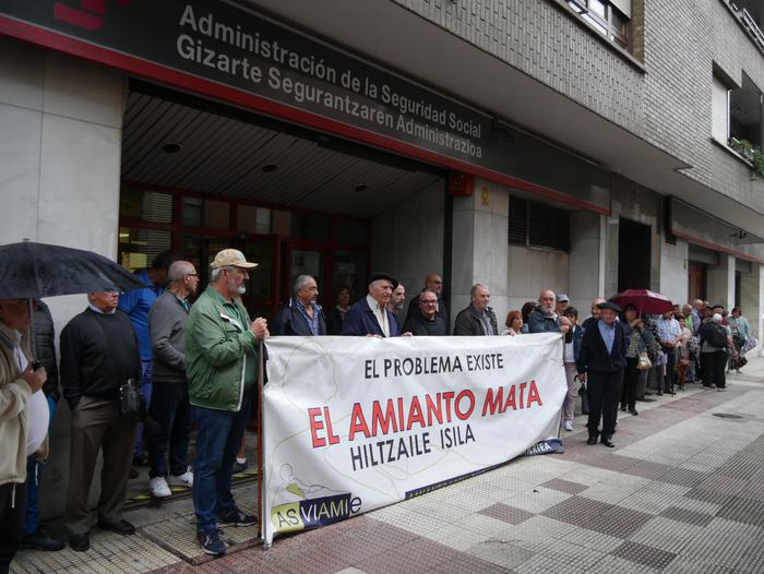 Asviamie Aiaraldeak elkarretaratzea egin du gaur Laudioko Gizarte Segurantzaren egoitzaren aurrean. Elkarteak salatu du mesotelioma duen laudioar bati ukatu dizkiotela diru-laguntzak gaixotasunari aurre egiteko.