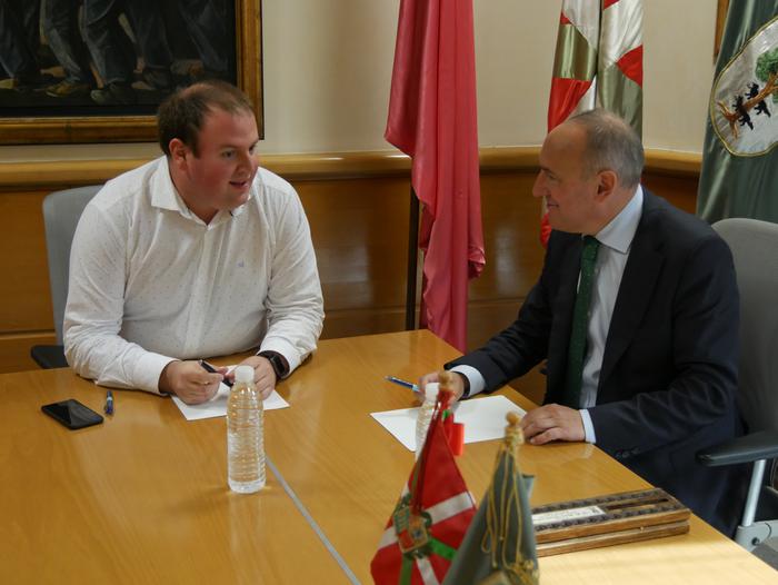Ander Añibarro alkateak azaldu zuen helburua dela "sinergia berriak sortzea bi erakundeen mesederako". Elkarlana, Lamuza parkea, enplegua eta garraio izan ziren bileraren gai nagusiak.