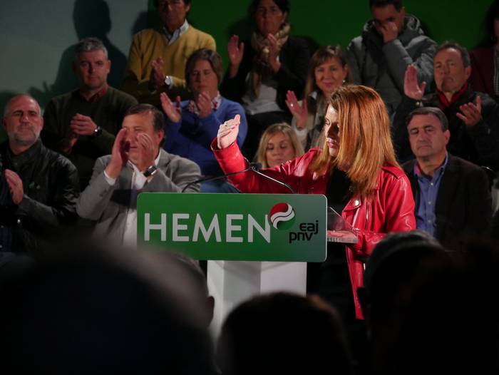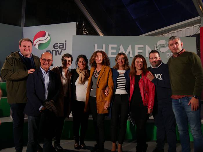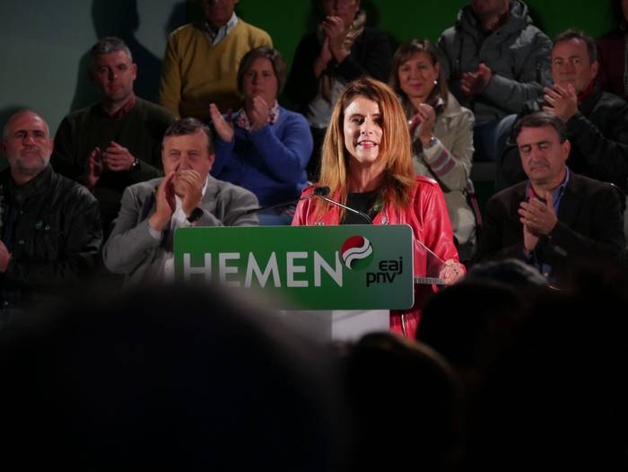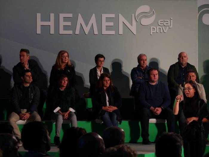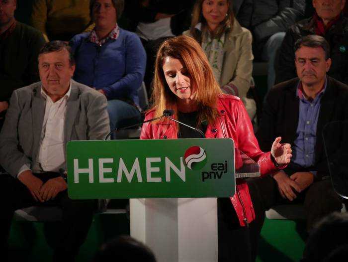 Almudena Otaola senatariak -eta hautagaiak- hasi du ekitaldia, egoera politikoari keinu eginez: "Gertatu dena politikarien errua izan da, baina gu taldea -euskal selekzioa- gara eta irabazi behar dugu. Zuen indarra da behin eta berriz garaipena emango diguna". Senataria izanik, "hamarreko taldea" dutela azaleratu du: "Azaroaren 10ean boto guztiak mugitu behar ditugu Araba eta Euskadiren ordezkaritzarako. Boto eraginkor bakarra dago, EAJrena". Europa izango dutela ipar nabarmendu du, eta emakumeen borroka gogora ekarrita bukatu du hitzartzea. Izan ere, bihar beteko dira 86 urte emakumeek lehenbizikoz bozkatu zutenetik.